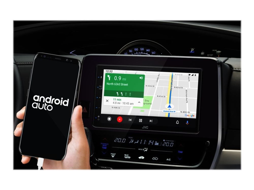 Mirroring for Android Phone Connection with USB - Durch die Installation der App „Mirroring OA for JVC“ wird Ihr Android-Telefon nahtlos über USB auf dem Bildschirm des Receivers angezeigt. Sie können eine Vielzahl von Apps wie Waze und YouTube nutzen. Die Steuerung per Berührung ist sowohl über den Bildschirm als auch über das Smartphone möglich.