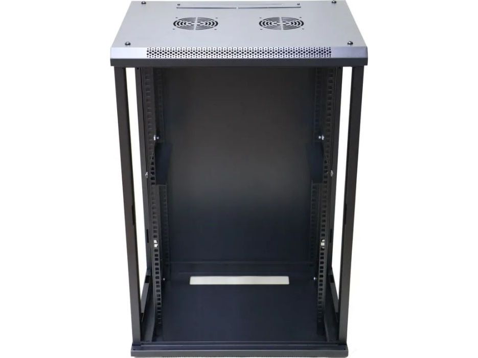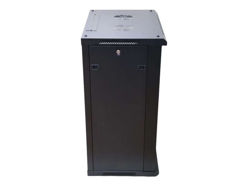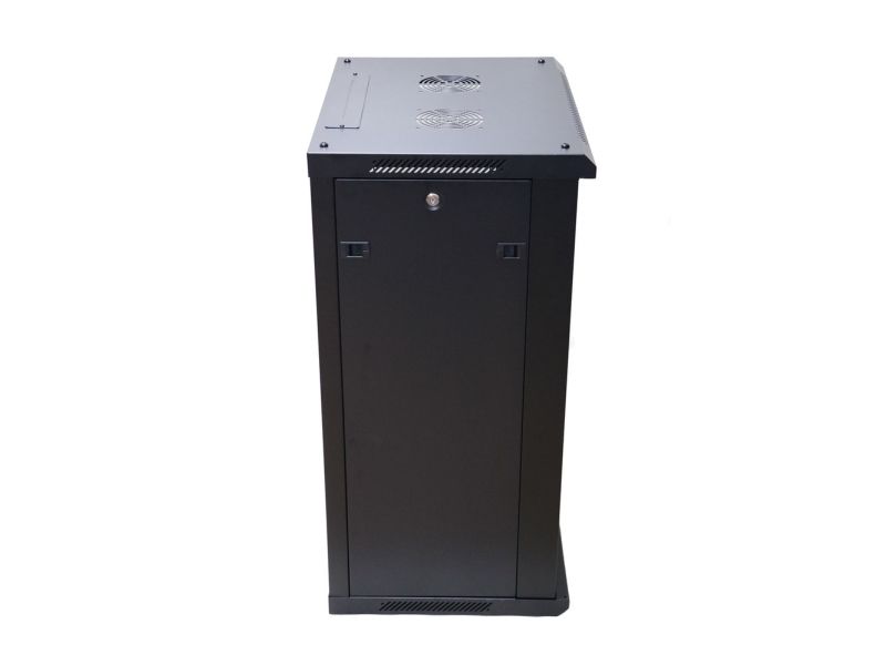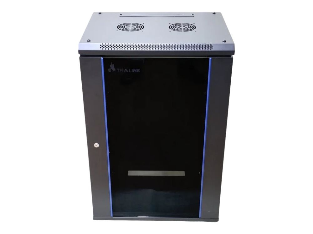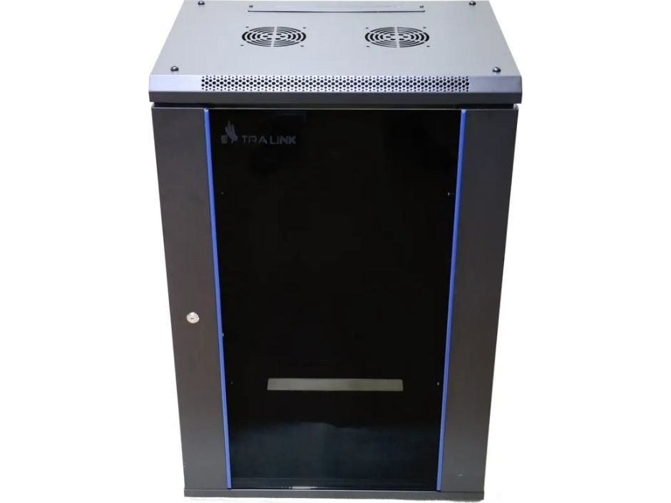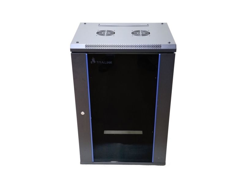 The Extralink rack cabinet is designed for wall mounting in offices, network server rooms and CCTV control rooms. The cabinet's walls are made of cold-rolled steel sheet, while the front doors are made of tempered glass with the possibility of opening to the left or right side.