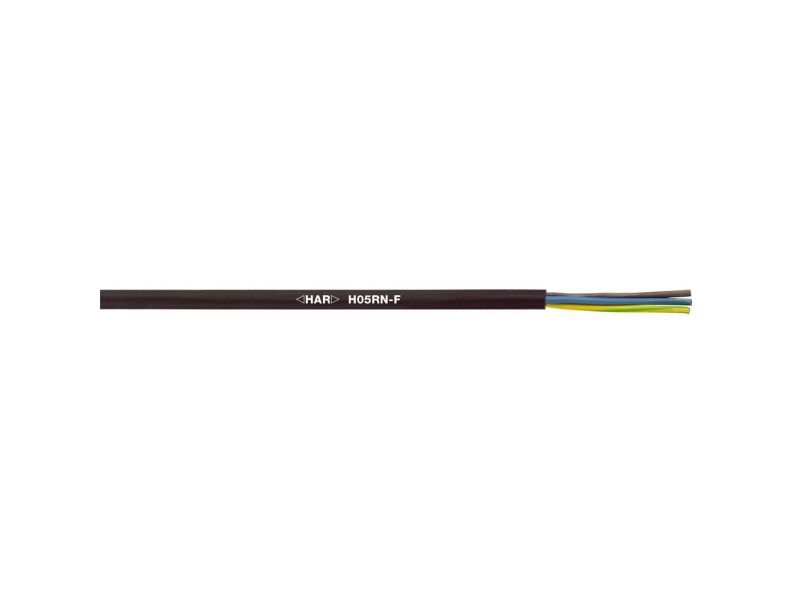 Mittlerer Gummimantel für den Einsatz als Handwerkzeuganschluss und leichte Werkstattausrüstung bei mittlerer Beanspruchung in trockenen und feuchten Räumen und im Freien. Aufbaudaten: feindrähtiger Kupferdraht, Aderisolation aus Gummi, Adern verdrillt, Rassen- oder Nummernaufdrucke in schwarzem Draht nach VDE 0293. Außenmantel aus Polychloropren-Kautschuk, ozonbeständig, feuerhemmend