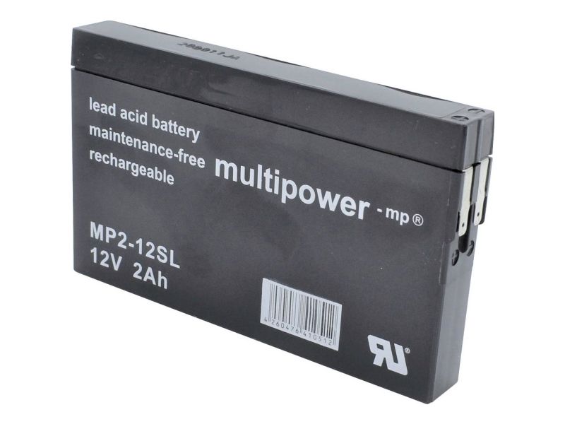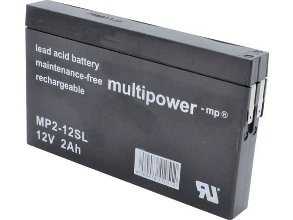 multipower MP2-12SL MP2-12SL Blei-Säure-Akku 12 V 2 Ah Bleivlies (B x H x T) 148 x 90 x 20 mm Flachstecker 4,8 mm Wartungsfrei, geringe Selbstentladung