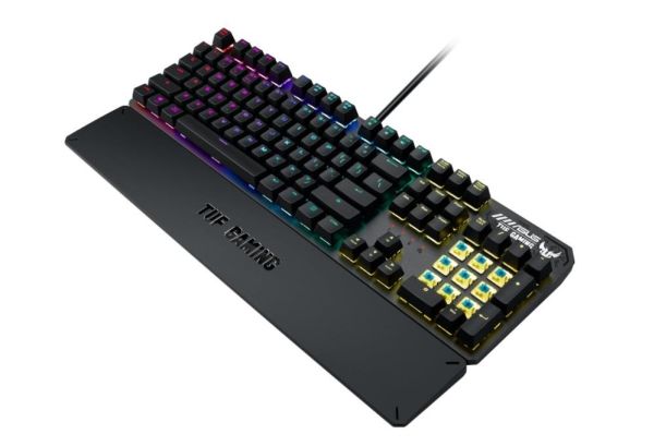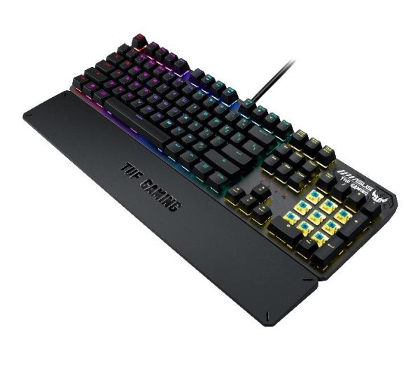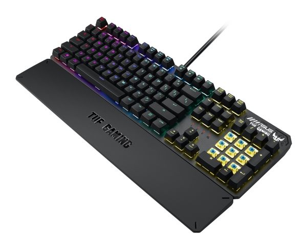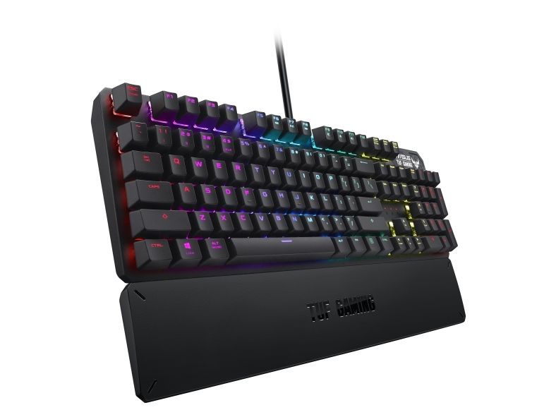 ASUS TUF Gaming K3 is a mechanical RGB keyboard that features durable switches for responsive and reliable performance. Its customizable all-key RGB lighting offers unlimited personalization options, while the detachable magnetic wrist rest gives you extra support and comfort for gaming marathons. In addition, K3 offers convenient USB 2.0 pass-through, a durable top cover, eight fully programmable keys with onboard memory and media keys - so you'll be ready to play like a pro.