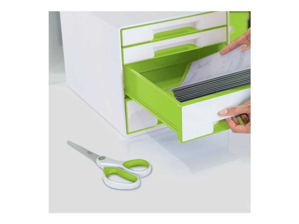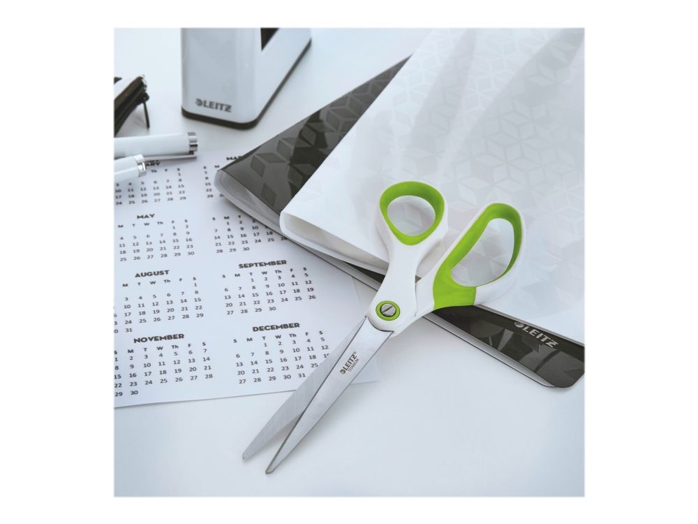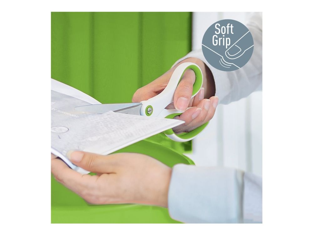 Premium titanium coated, stainless steel office scissors. With comfortable ergonomic grip in striking dual colour. The durable Titanium coated blades stay sharp much longer than standard blades.