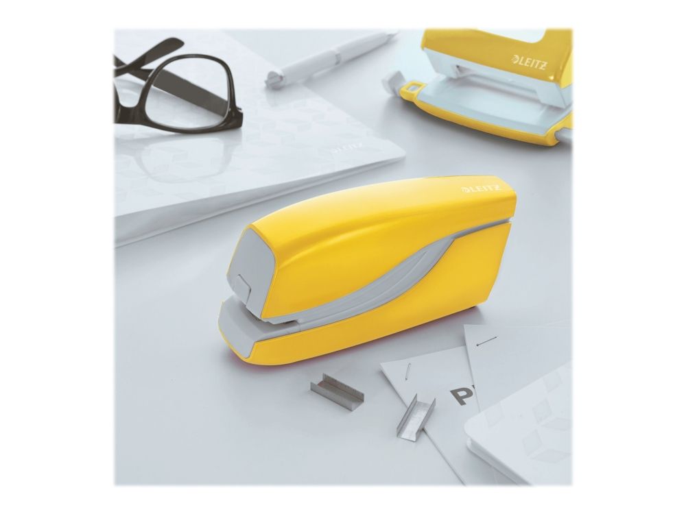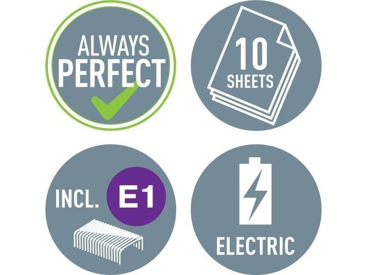 Einfaches, einhändiges Bedienen, ideal für häufige Verwendung. Die auffälligen WOW Farben sind ein echter Hingucker auf jedem Schreibtisch. Dank Batteriebetrieb mobil einsetzbar. Heften ohne Klammerstau mit den e1 Heftklammern.