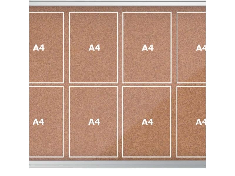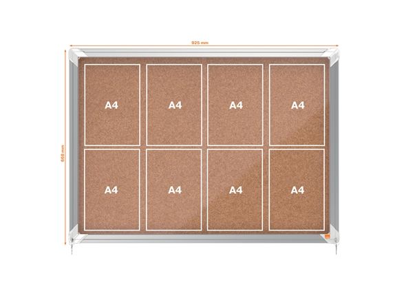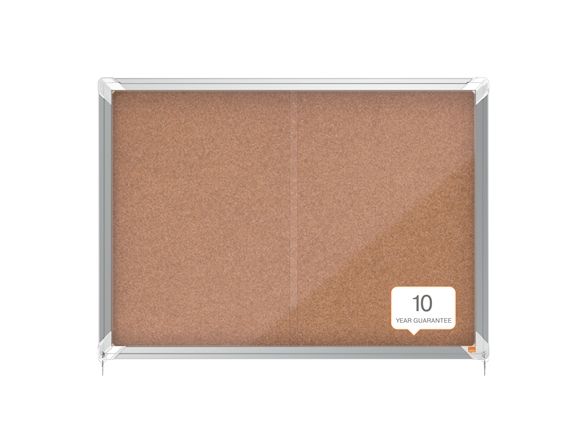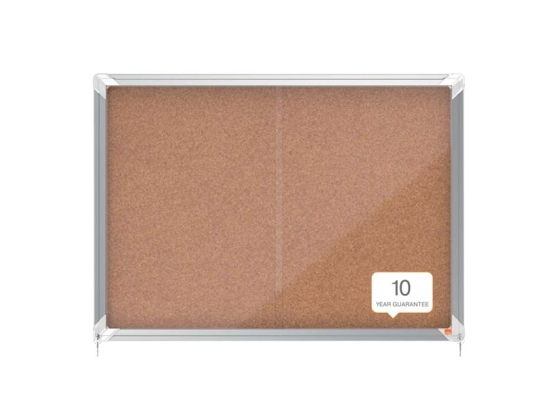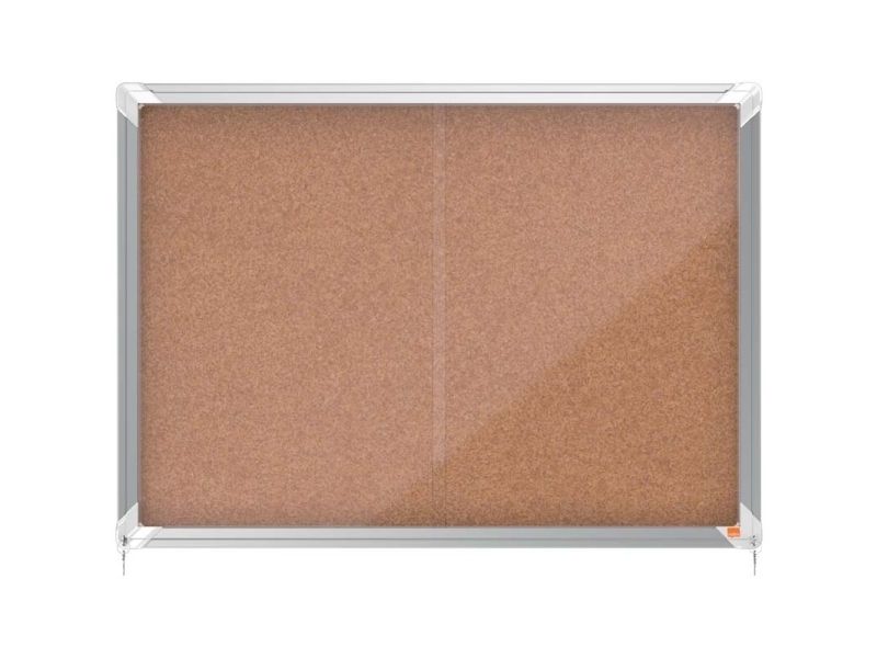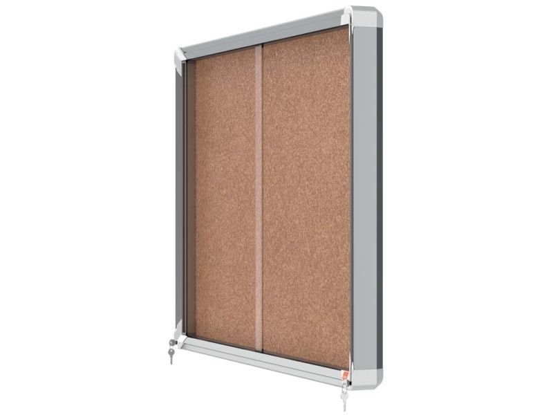 Abschließbarer Schaukasten für den Innenbereich mit Korkpinnwand, Schiebetür aus 4-mm-Sicherheitsglas und Sicherheitsschloss. Der Schaukasten wird von einem modernen Aluminiumrahmen eingefasst und mittels der mitgelieferten Wandbefestigung angebracht. Die hochwertige Korkoberfläche eignet sich bestens zum Anheften und Präsentieren von Dokumenten. Größe: 8 x A4.