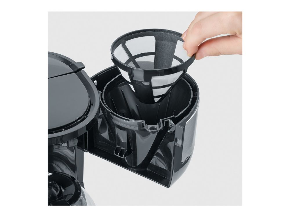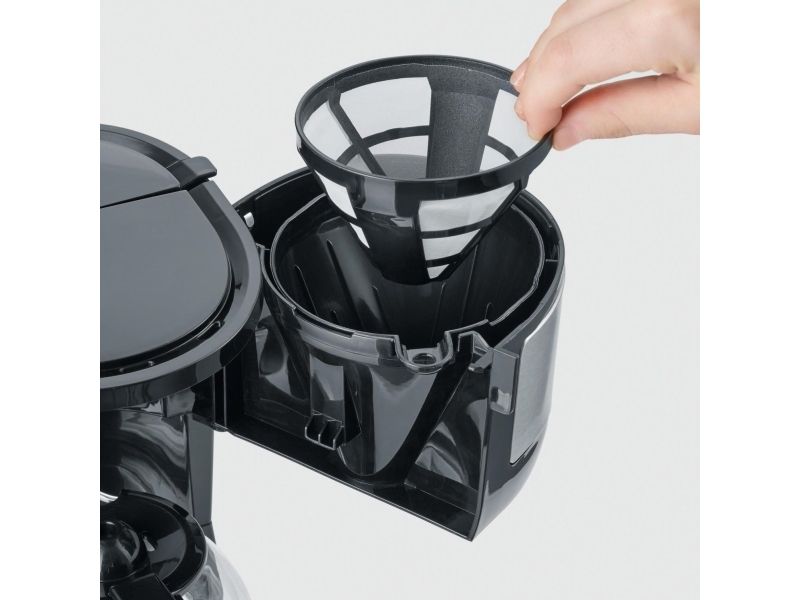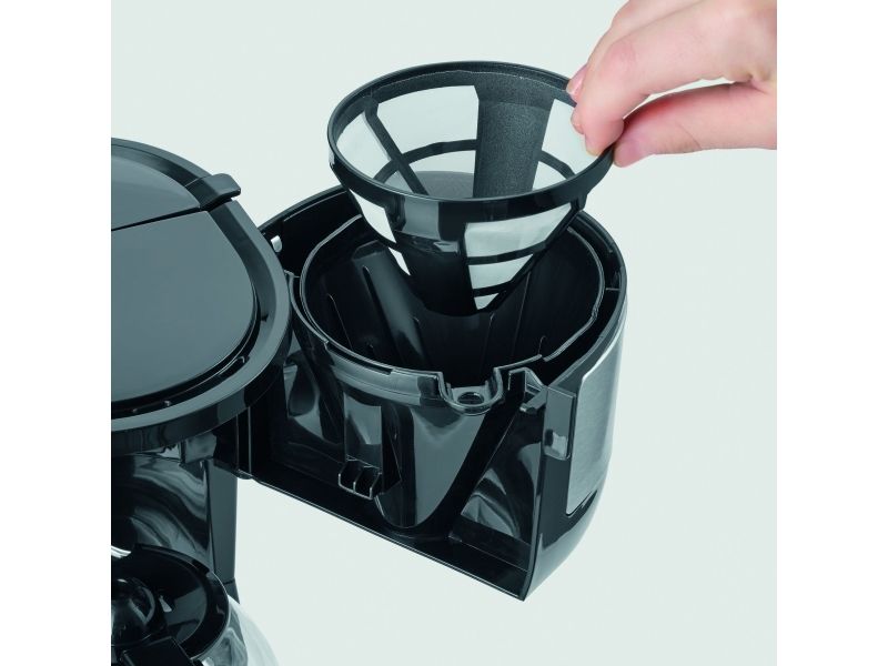 Für den vollen und aromatischen Kaffeegenuss in 4 Tassen. Inklusive abwaschbarem Permanentfilter zur dauerhaften Verwendung. Frontaler Schwenkfilter zur einfachen Befüllung. Platzsparendes Slim-Design, ideal für Reisen, Single und Seniorenhaushalte.