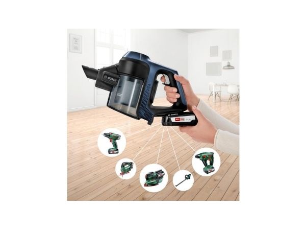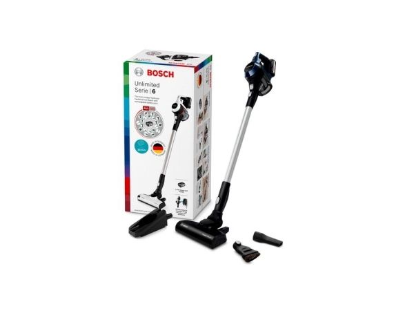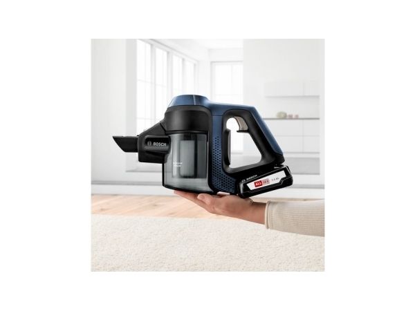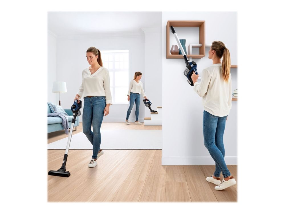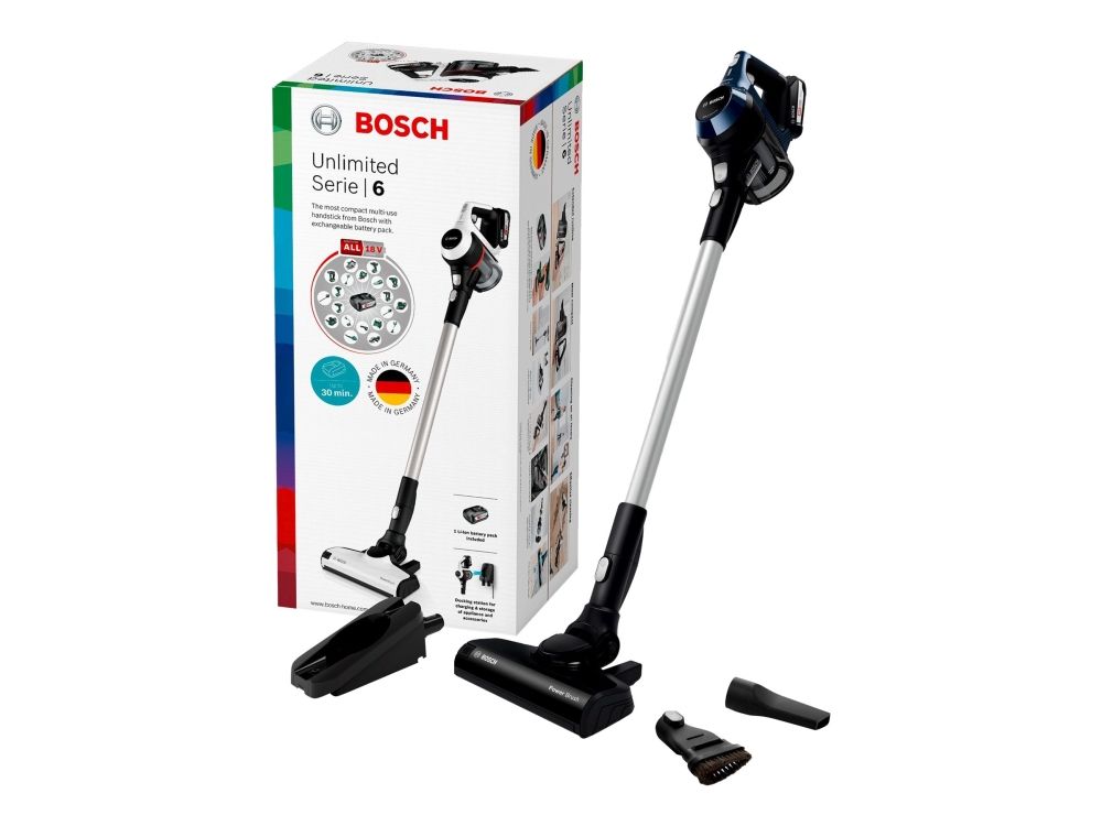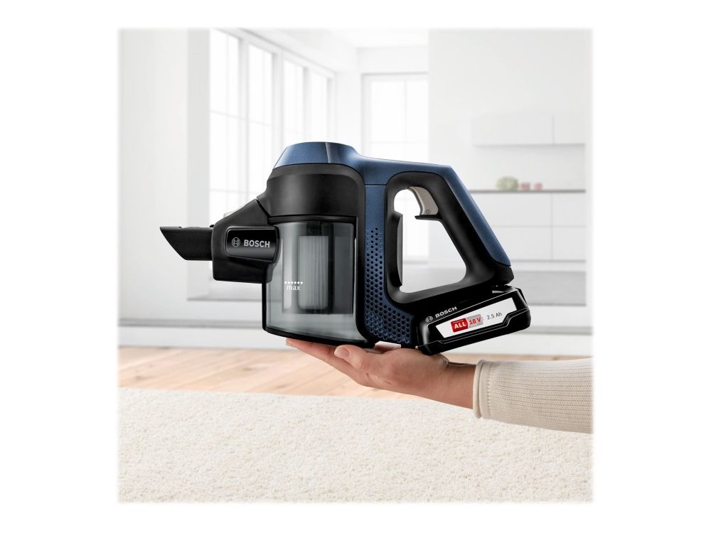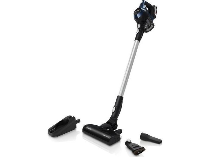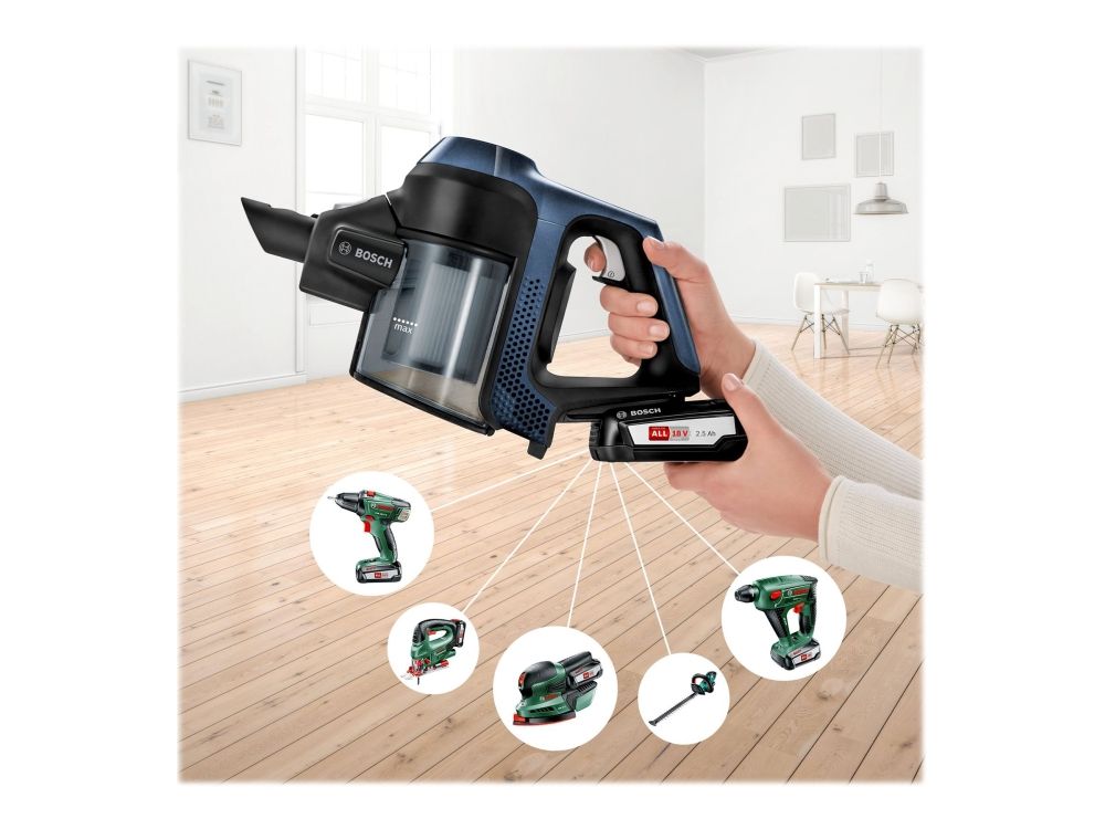 Bosch Serie 6 BCS611P4A. Product type: Electric broom, Dust container type: Bagless, Product colour: Black. Cleaning type: Dry, Vacuum air filtering: Hygiene Filter, Dirt separating method: Filtering. Power control: Electronic. Power source: Battery, Battery technology: Lithium-Ion (Li-Ion), Battery voltage: 18 V. Package width: 800 mm, Package depth: 300 mm, Package height: 195 mm