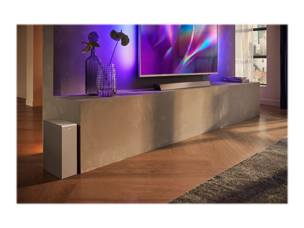 Enrich your experience of every movie, game, and playlist! This sleek soundbar and wireless subwoofer with Dolby Atmos boasts an ideal combination of performance and style. You’ll get better bass, more powerful music, and clearer voices.