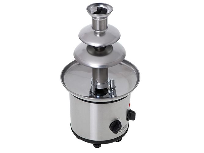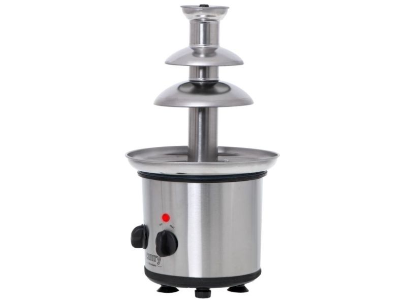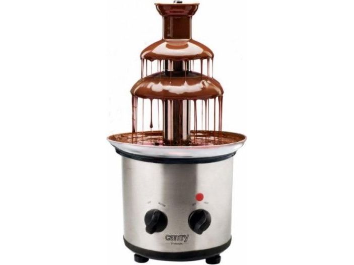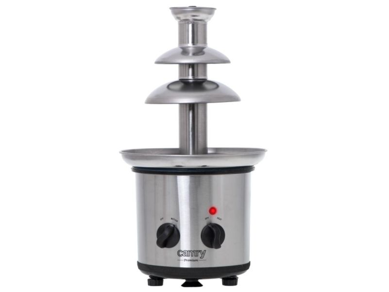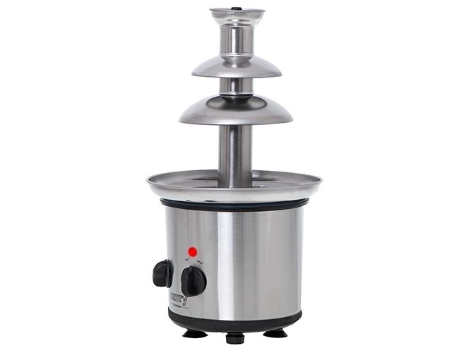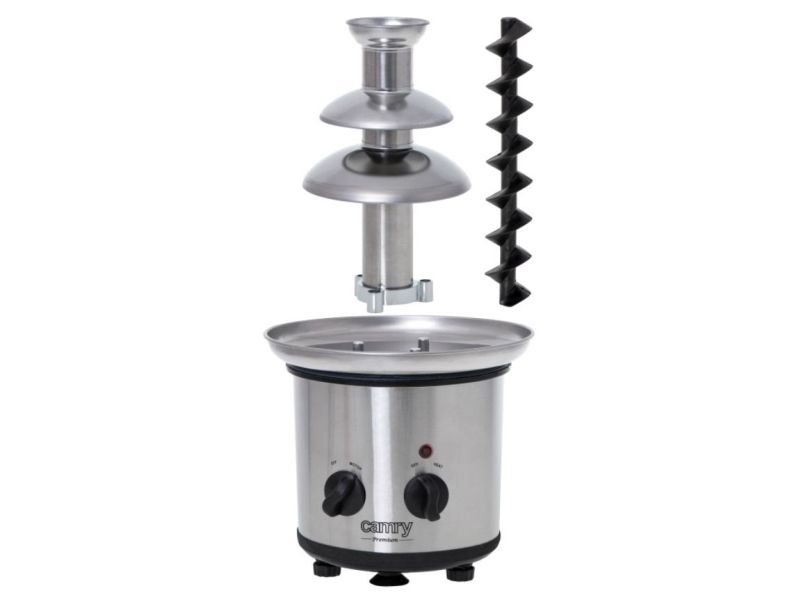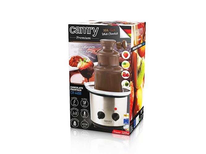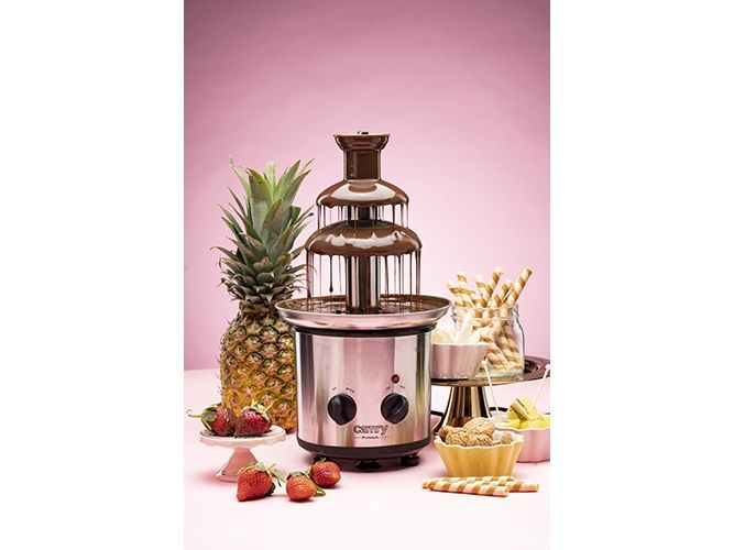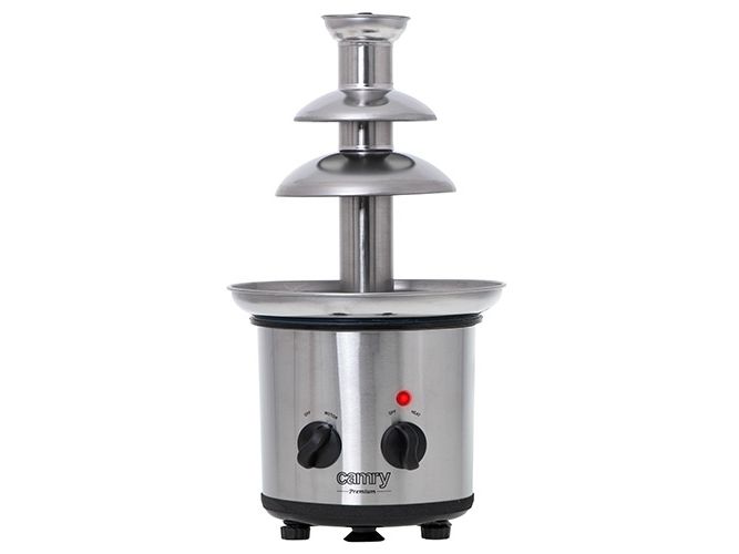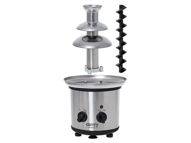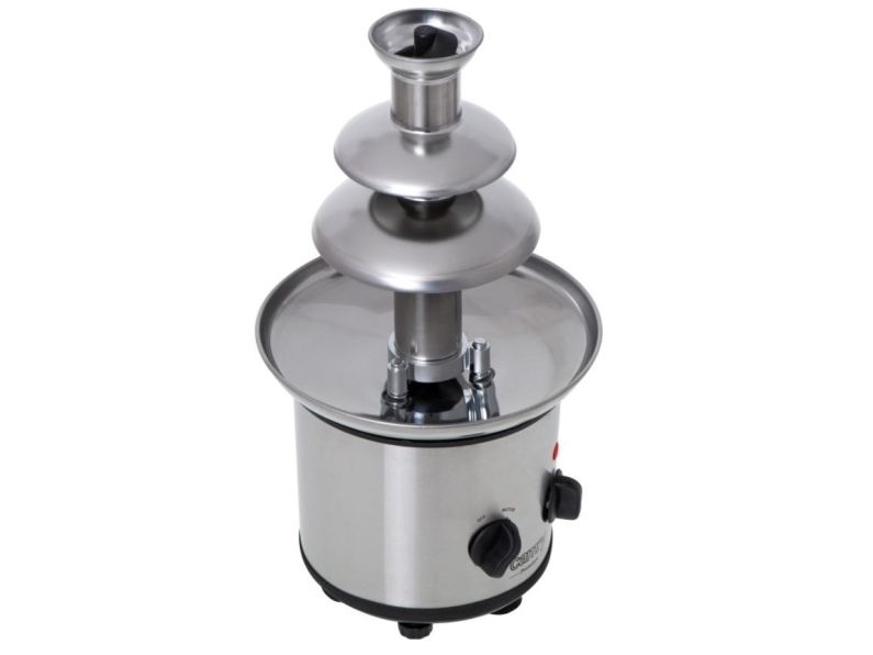 A chocolate fountain CR4488 will make every party more attractive. A popular form of entertaining food at wedding and birthday parties. The pure pleasure of preparing a dessert by yourself. You can dip your favorite fruit in chocolate, e.g. strawberries, grapes, pieces of apple & peaches. A great device for decorating desserts with chocolate glaze, you can also dip ice cream cones, wafer cups, biscuits, your own baked cakes or marshmallows in liquid chocolate. Your fantasy may have no limits. The chocolate fountain CR4488 is equipped with two knobs starting the drill rotation and heating function. Collecting tray with diameter of 21.4 cm will hold 650 ml of liquid chocolate. Strong 320W heater and high temperature resistant drill, fountain tower and tray made of stainless steel, therefore they will provide a long use.
