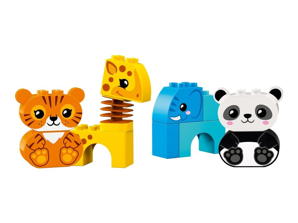 Die unverwechselbaren Tiere stellen Kleinkinder vor unterschiedlich komplexe Bauaufgaben und fördern ihre Baufähigkeiten. Spezielle Funktionen wie der Wackelhals der Giraffe bieten noch mehr Spielspaß.