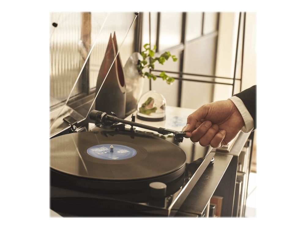 The turntable includes a straight, matte-finish, carbon-fibre tonearm with adjustable tracking force and an AT-HS4 universal ½"-mount headshell with a black AT-VM95E Dual Moving Magnet phono cartridge. Audio-Technica has been a leader in phono cartridge design for more than 50 years, and that expertise shows in the versatile, high-performance AT-VM95E cartridge, which comes with a 0.3 x 0.7 mil elliptical stylus, but is also compatible with any VM95 Series replacement stylus, offering a wide choice of options for every budget and application.