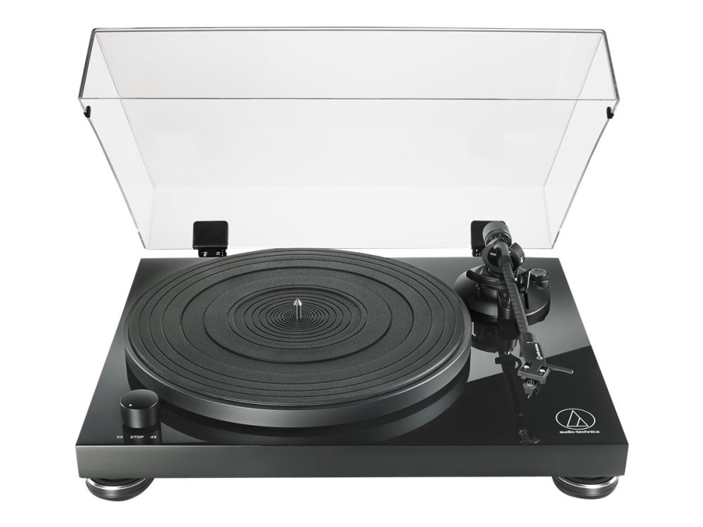 Fully Manual Belt-Drive Turntable The AT-LPW50PB is a fully manual, belt-drive turntable designed to give you optimal high-fidelity audio reproduction from vinyl. It features an anti-resonance 30 mm thick MDF (medium density fiberboard) plinth, with a high-gloss, piano-black finish, to dampen low-frequency acoustical feedback, and a sensor-monitored motor to ensure accurate platter rotation speeds of 33-1/3 and 45 RPM.