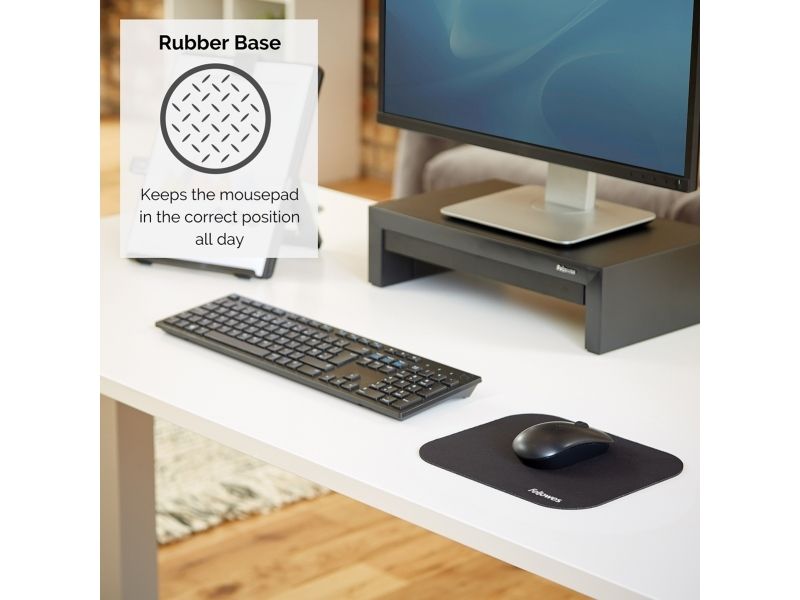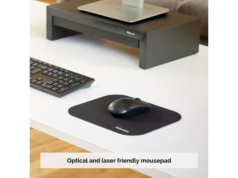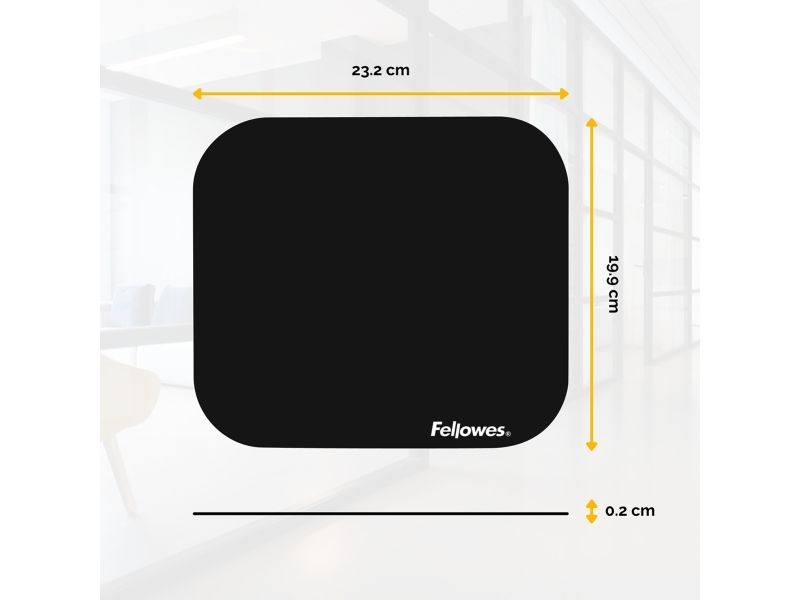 Mouse Pad - BlackFellowes Premium Mousepad - Black. Width: -232 mm, Depth: 199 mm. Product colour: Black, Surface coloration: Monochromatic, Material: Polyester, Rubber