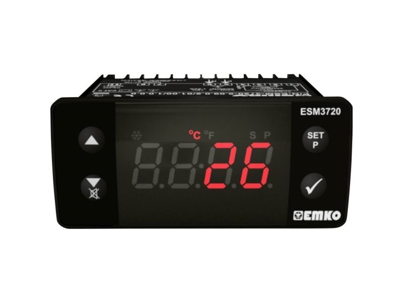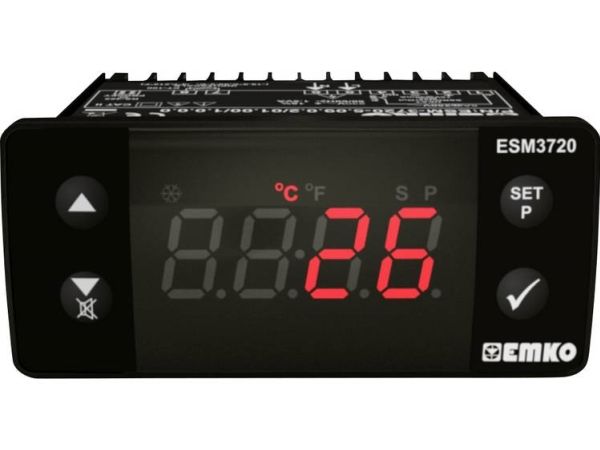 Emko ESM-3720 er en 2-punkts og PID temperaturregulator til indbygning i styretavler. Med indstillelig temperatur-værdi anvendes regulatoren til Varme- eller køleanvendelser. Regulatoren har en alarmfunktion med alarmudgang og intern summer. Med PROKEY stick, der fås seperat, kan programindstillingerne overføres til andre enheder, så parametrene ikke skal indstilles individuelt på hver enhed. Med RS-485-MODULSTIKKET, der fås separat, kan regulatoren udvides med et RS485 modbus RTU interface.