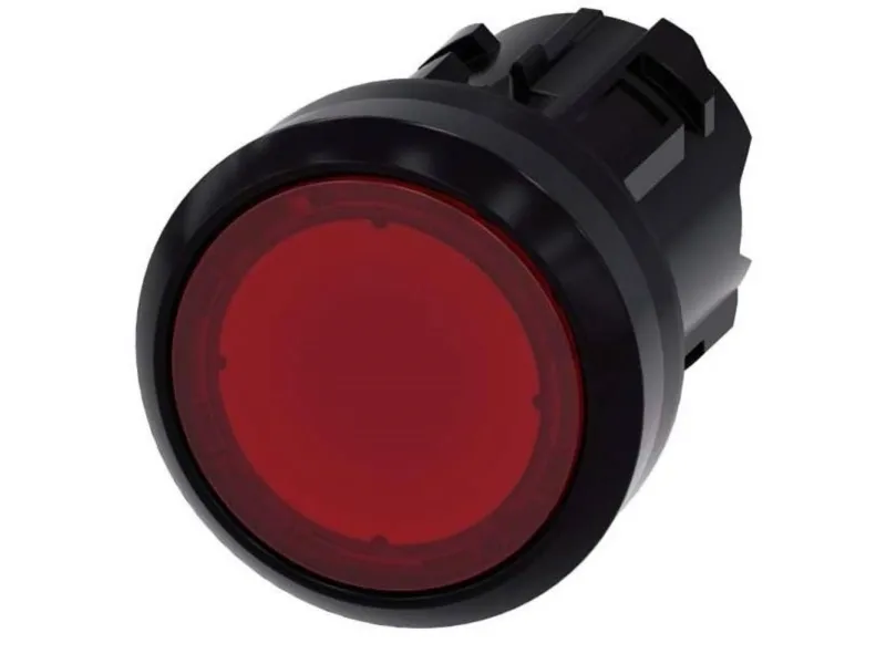 Trykknap, belyst, som lysmelder, 22 mm, rund, Rød plastLysalarm i trykomstrykdesign, 22 mm, rund, plast, rød lysmelder SIRIUS ACT til signalering af koblingstilstande eller fejl i anlæg med brillant Leuchtkraft takket være energieffektiv LED-teknologi. Under mærkenavnet SIRIUS ACT tilbyder Siemens en unik portefølje af kommando- og meldeapparater med globale produktgodkendelser i fire moderne designrækker af robust ægte metal og plast i høj kvalitet. Det innovative knapkoncept forenkler monteringen så meget, at det kun kræver en hånd og ikke noget specialværktøj. Som monteringsboringer rækker ufrie huller, da der allerede er integreret en 100% vridningsbeskyttelse. Takket være den konstant høje beskyttelsesklasse er de robuste enheder industriegnede og egnet til udendørs anvendelse. Det er endda muligt at rengøre med højtryksstråle. Hverken støv, olier eller aggressive lud kan forstyrre den pålidelige drift