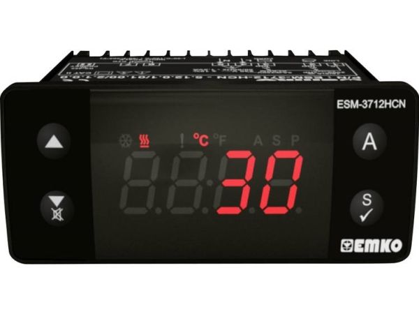 Emko ESM 3712-HCN er en 2-punkts temperaturregulator til indbygning i styretavler. Med indstillelig temperatur-værdi anvendes regulatoren til Varme- eller køleanvendelser. Regulatoren har en alarmfunktion med alarmudgang og intern summer. Med PROKEY stick, der fås seperat, kan programindstillingerne overføres til andre enheder, så parametrene ikke skal indstilles individuelt på hver enhed. Med RS-485-MODULSTIKKET, der fås separat, kan regulatoren udvides med et RS485 modbus RTU interface
