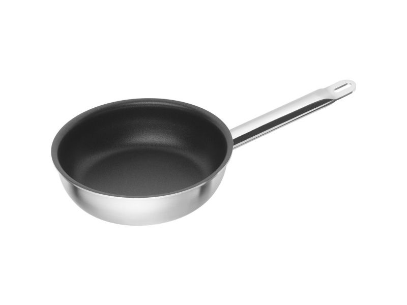 If you want to be your own chef you will love the high-quality cookware of the ZWILLING Pro series. The series sets the standard in quality, variety and, above all, design, that is inspired by the most popular designs of the chefs. The fry pan with Duraslide Ultra non-stick coating helps with preparing foods that stick easily. Fish, egg dishes and even vegetables are simple to fry and achieve perfect results. The non-stick coating comprises three layers and is especially robust and durable. Measuring 28 cm across, it has space for medium-sized portions, and its SIGMA Clad base with strong aluminium core rapidly heats the stainless steel pan. At the same time, the heat is distributed incredibly evenly all the way to the rim. Do you prefer to cook over an induction hob? No problem. The pan can be used on any kind of hob and is is thanks to special material finishing particularly dishwasher-safe. This means less work for you and allows you to fully concentrate on your guests. ZWILLING Pro. Shape: Round, Type: All-purpose pan, Product colour: Stainless steel. Diameter: 28 cm, Bottom diameter: 22 cm, Width: 761 mm. Quantity per pack: 1 pc(s)