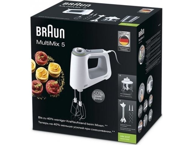Braun MultiMix 5 HM 5137, Handmixer, Grau, Weiß, Schlagen, Kneten, Mixen, Tasten, Drehregler, 0,5 l, Edelstahl