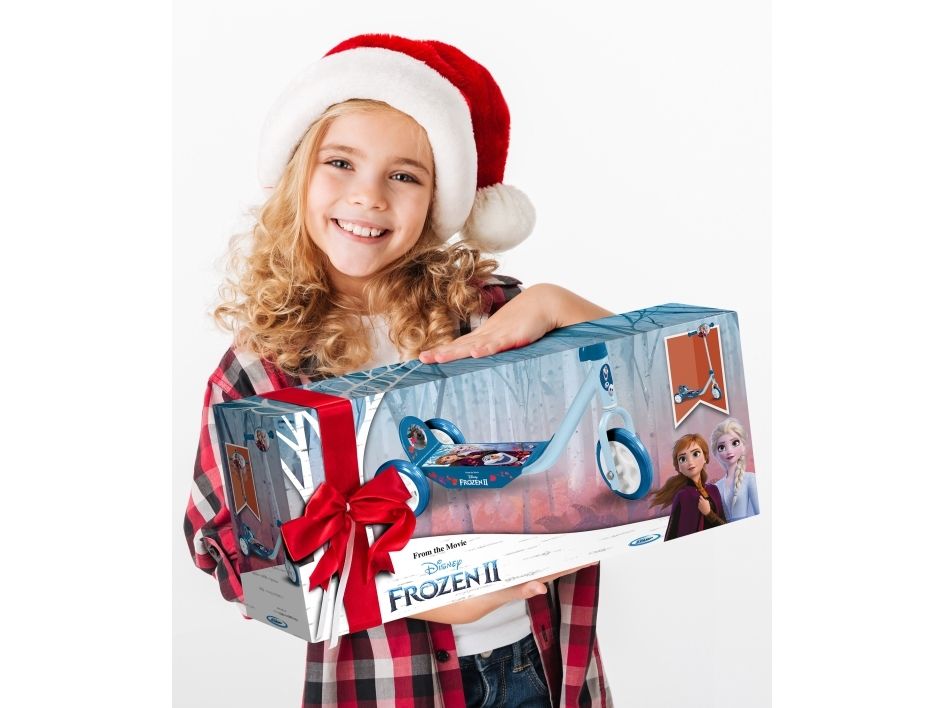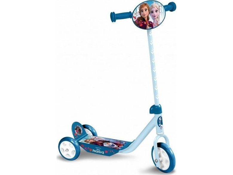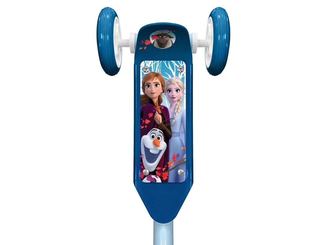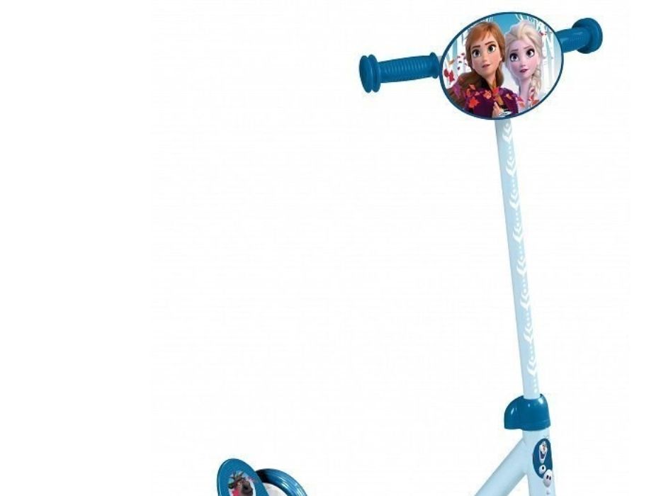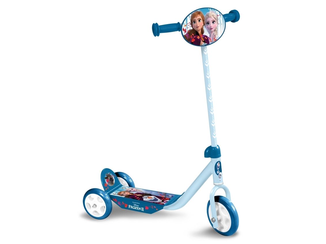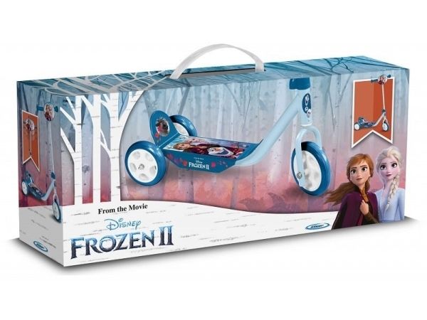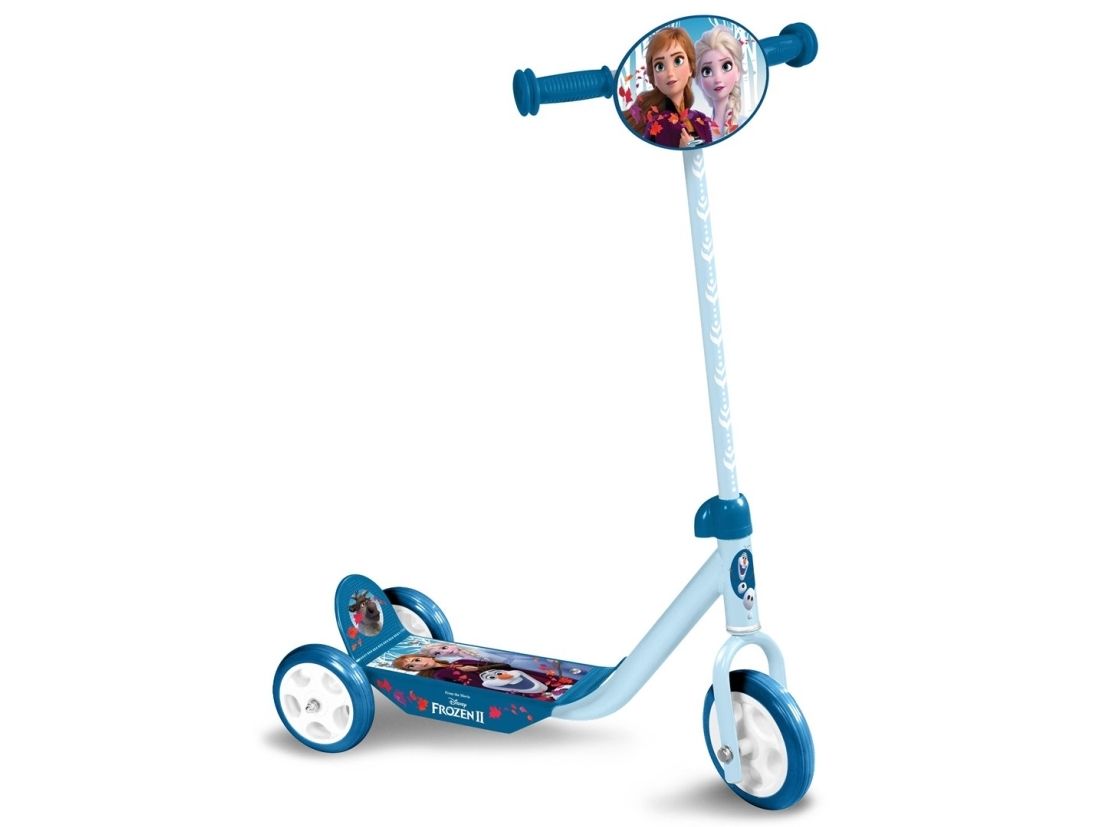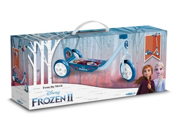 Frozen II 3 wheels scooter This 3 Wheeled Frozen scooter is the perfect for scooter for a first scooter for any Frozen fan. It has 3 Wheels for better stability. There is a large and anti-slip footplate and large easy-grip handle. The handle can be adjusted so the scooter can grow with your little one”