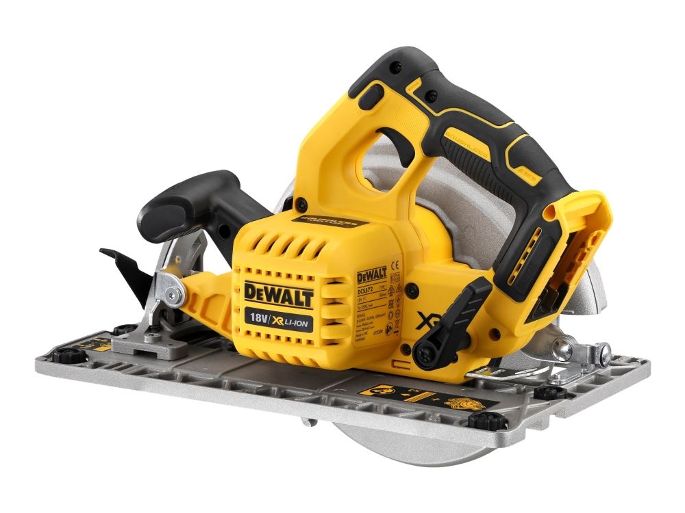 DEWALT Brushless Motor for extended run-time, reliability & durability General purpose ripping, cross-cutting and bevelling circular saw for wood and other construction materials Variable adjustment of the bevel angle to 57 degrees Optimum balance for safe, fatigue-free operation Stable block construction for low vibration running and long service life Additional handle for safe two-handed work Direct compatibility with DEWALT AirLock system for easy, secure connection to extraction hose Dust blower clears dust and debris from cut line LED work light for improved cut line visibility Kreipiamasis begelis, derantis su DEWALT kreipiamuju begeliu sistema – kad galetumete naudoti greitai ir lengvai Scale for precision cutting depth to 58mm (54mm when used with a Guide Rail)