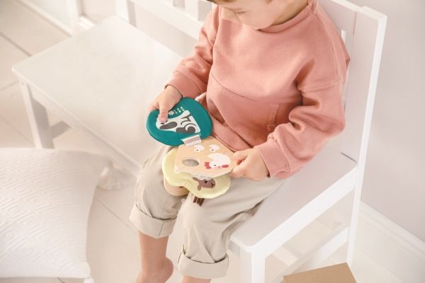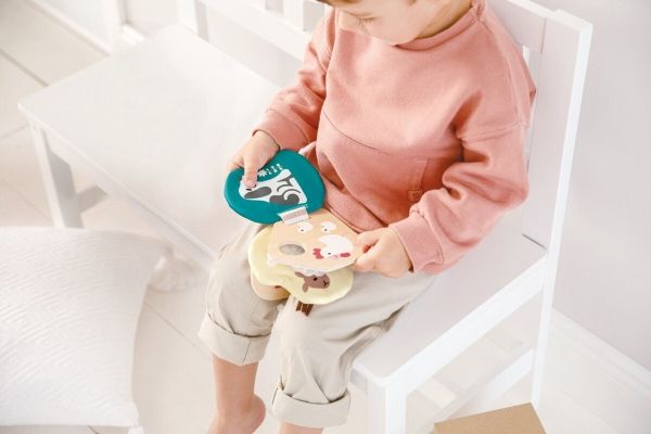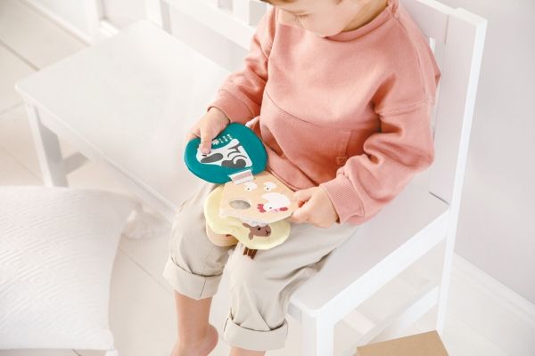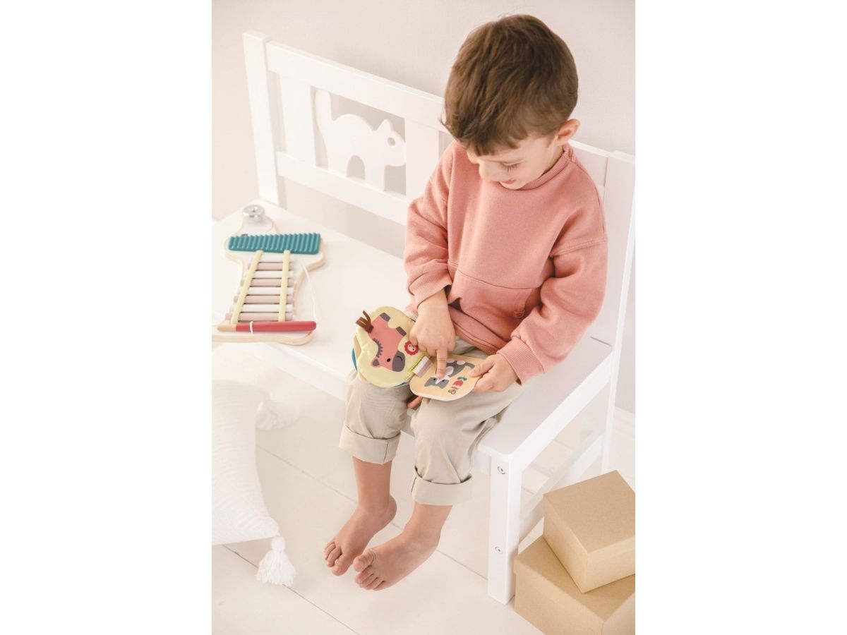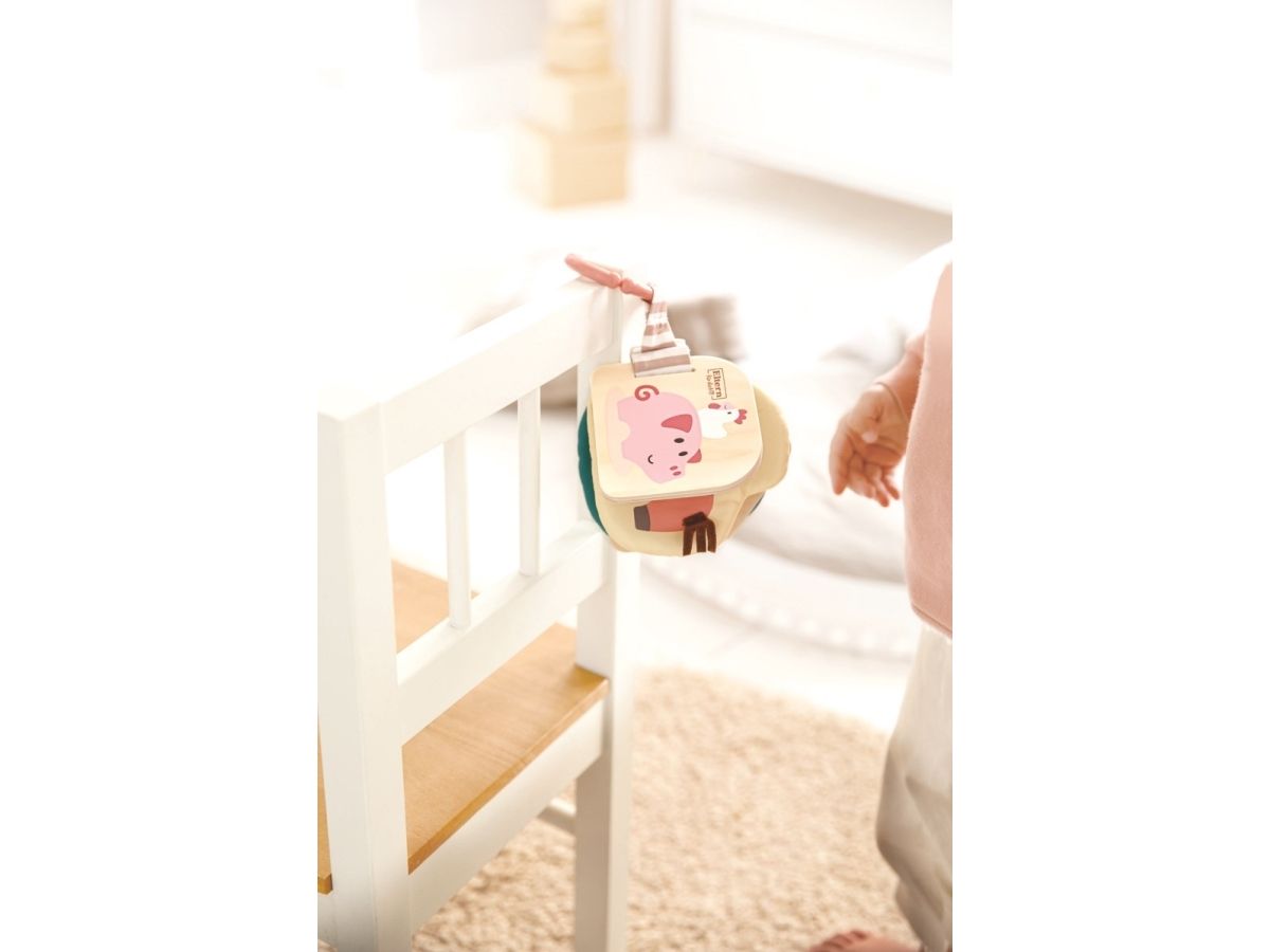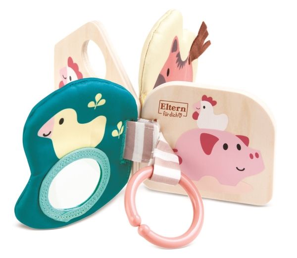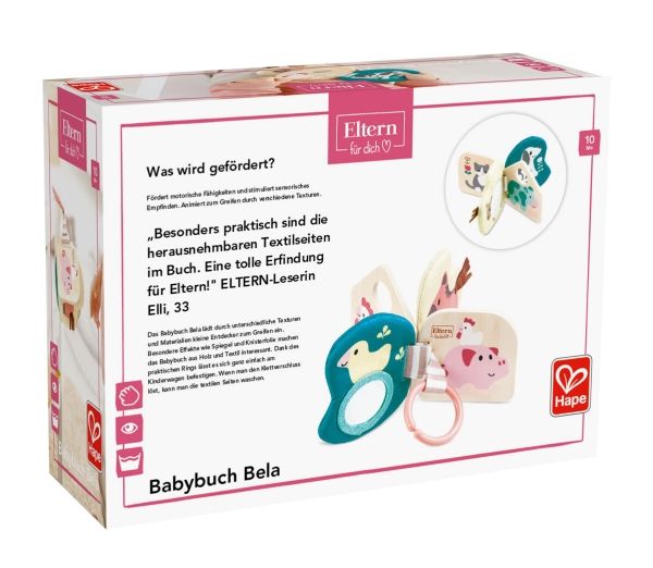 Der Baby Bog Bela aus Holz und Stoff lädt kleine Abenteurer dazu ein, ihren Weg durch verschiedene Texturen und Materialien zu finden. Spezialeffekte wie Spiegel und Knisterfolie machen den Hape Baby Bog Bella besonders interessant. Dank des praktischen Rings lässt er sich leicht an Kinderwagen und anderen Oberflächen befestigen. Wenn Sie den Klettverschluss lösen, können Sie die Stoffseiten leicht waschen.