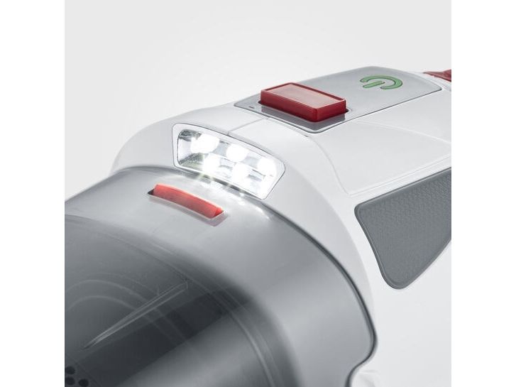 Leistungsstarke und langanhaltende Saugkraft Der integrierte 18,5 V Li-Ionen Akku ermöglicht eine Laufzeit von bis zu 20 Minuten im Power-Mode und bis zu 30 Minuten im Eco-Mode.