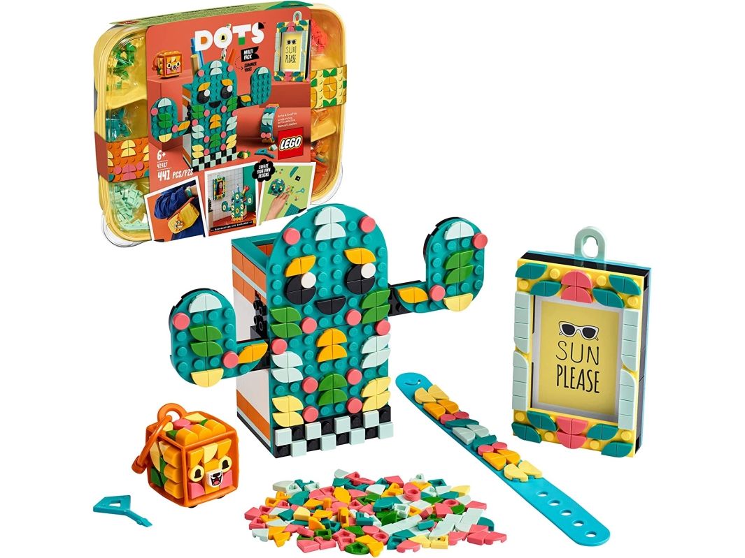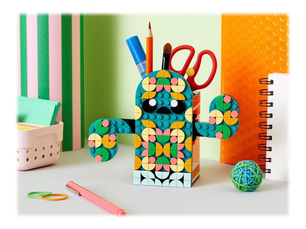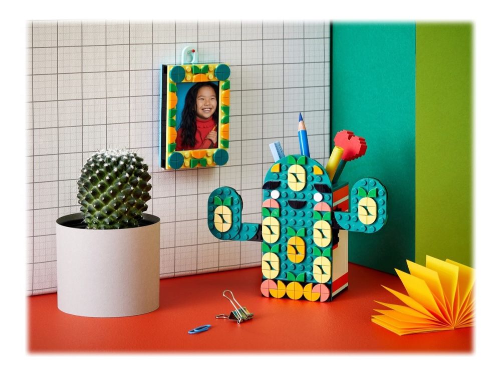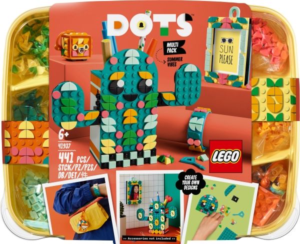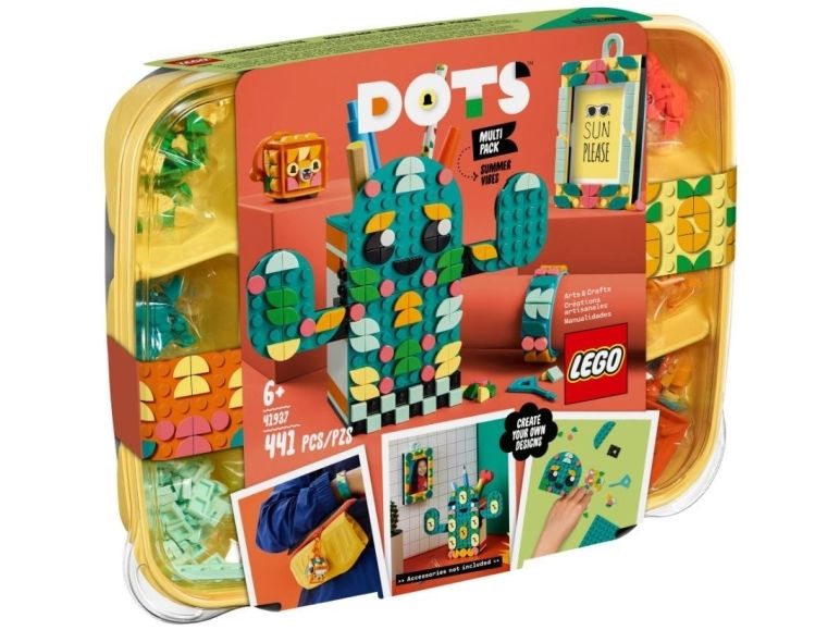 Du suchst ein kreatives Geburtstagsgeschenk? Dann liegst du mit dem LEGO® DOTS Kreativset Sommerspaß (41937) goldrichtig. Diese Box bietet Zugang zur kreativen LEGO DOTS Welt und lässt Kinder mit unterschiedlich komplexen Teilen Designfähigkeiten und Selbstvertrauen entwickeln.Vielseitiges DesignvergnügenDieses Kreativset beinhaltet verschiedene individuell gestaltbare DOTS Accessoires zum Tragen, Aufstellen oder Aufhängen: Unter anderem ein Armband, einen Löwen-Taschenanhänger, einen Bilderrahmen mit Aufhänger und einen kaktusförmigen Stiftehalter. Kinder können all diese Accessoires mit den beiliegenden Steinchen oder dem separat erhältlichen DOTS Ergänzungsset Urlaub (41932) kreativ gestalten.SommerspaßDieses vielseitige Kreativset lässt Kinder unterschiedliche Accessoires mit individuellen Mustern verzieren. Ihre kreativen Designs können die Kinder dann ihren Freunden zeigen. Das Set ist eine tolle Einführung in die Welt des Designs, in welcher Kinder auch gemeinsam gestalten können.