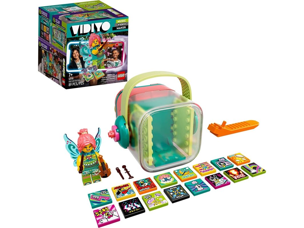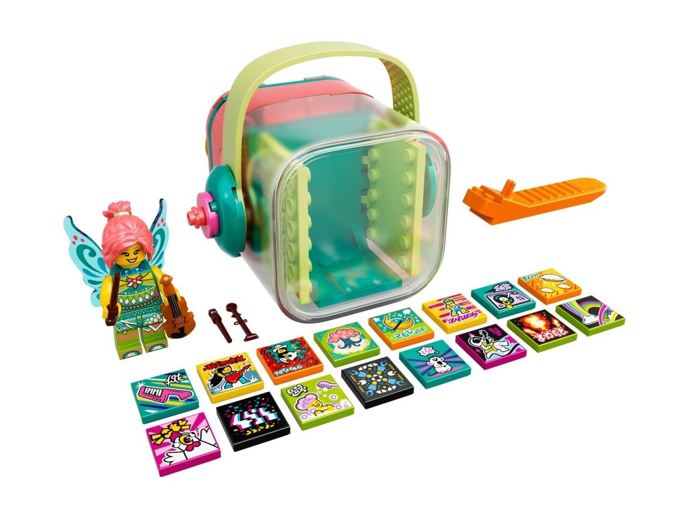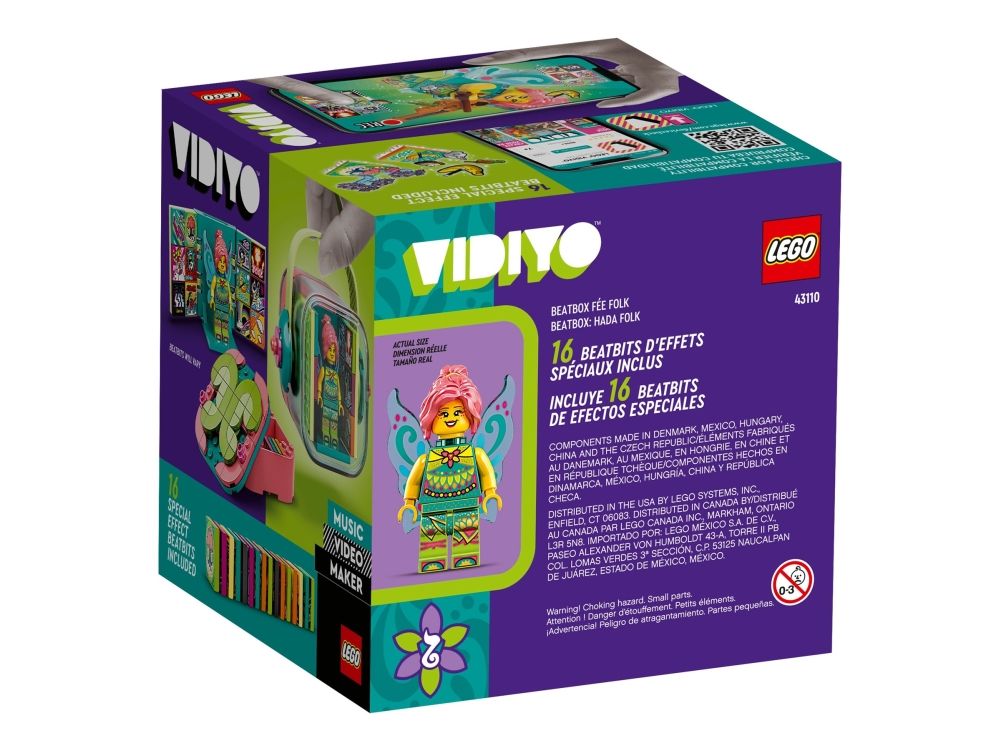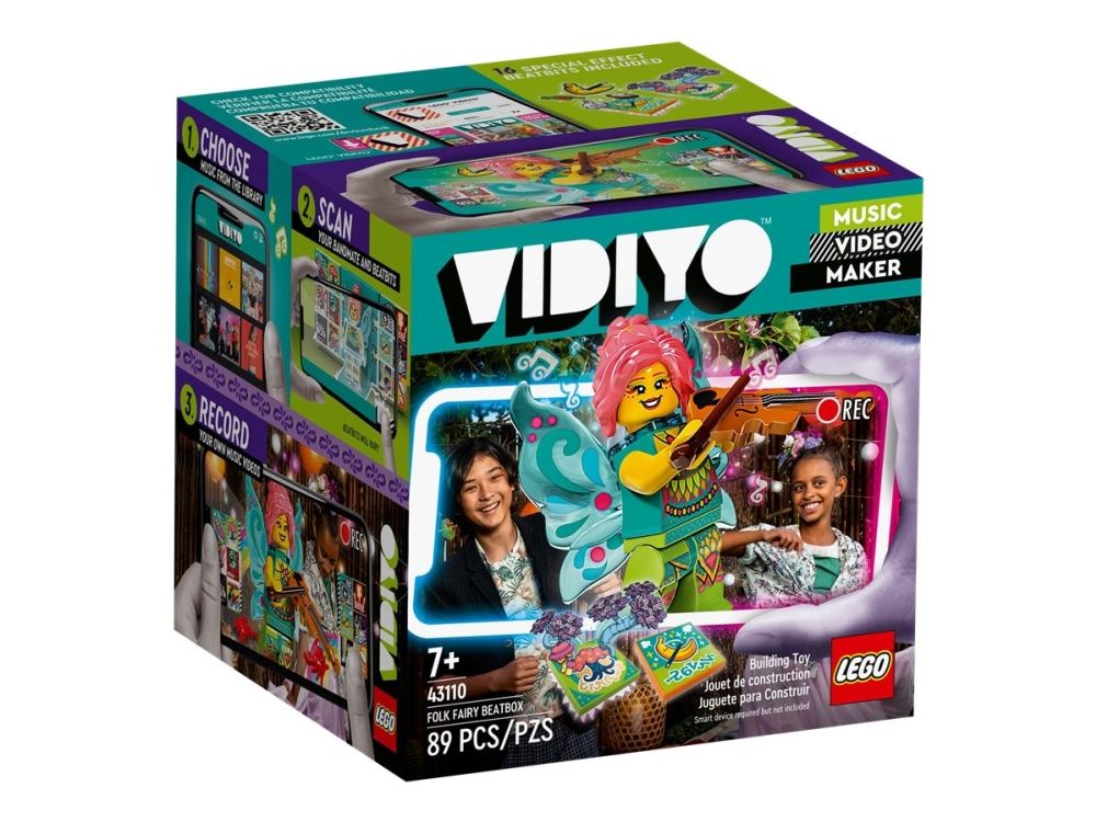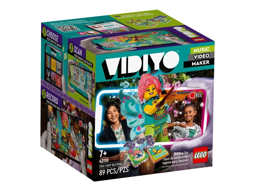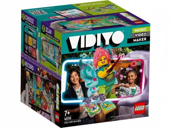 LEGO® VIDIYO™ 43110 Folk Fairy BeatboxMed LEGO® VIDIYO™ Folk Fairy Beatbox (43110), og den tilhørende app kan børn optage deres egne musikvideoer og dele dem med andre børn på app Sættet indeholder en Fee-minifigur, 14 tilfældige Beatbits og 2 specielle Beatbits. Download den gratis LEGO® VIDIYO™ app til at scanne minifiguren og Beatbits med specialeffekterne. Børn vil elske det, når deres Folk-sanger vågner til live i deres egen musikvideo. Gran Beatbits med app Eller brug fantasien-verdenseffekten til at få en trylleskov til at fremstå. Den rigtige gave til musikentusiaster drenge og piger fra 7 år, som fortjener en lille belønning. Dette legesæt er også en god gave til børn, som elsker musiklegetøj, gerne danser og står op på scenen. Beatbox'en er 8 cm høj, 7 cm lang og 11 cm bred. Beatbox'en kan klappes sammen og tages med på hver tur. I Beatb