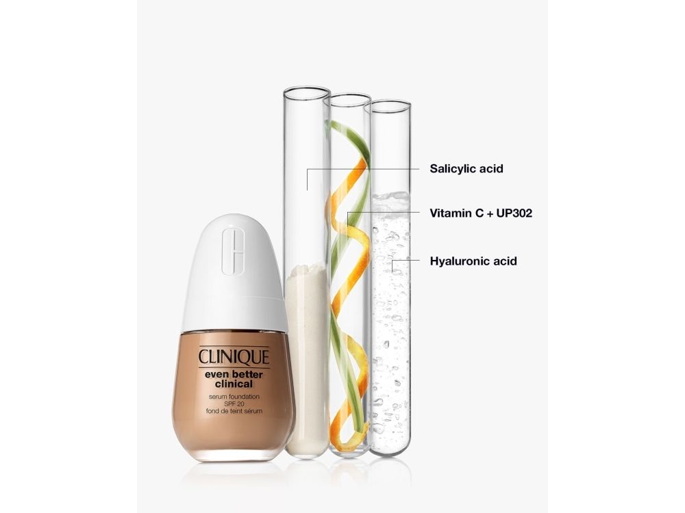 What It Is Our first clinical foundation with 3 serum technologies. This breakthrough oil-free formula includes hyaluronic acid, salicylic acid, and vitamin C + UP302 to leave bare skin looking even better.
