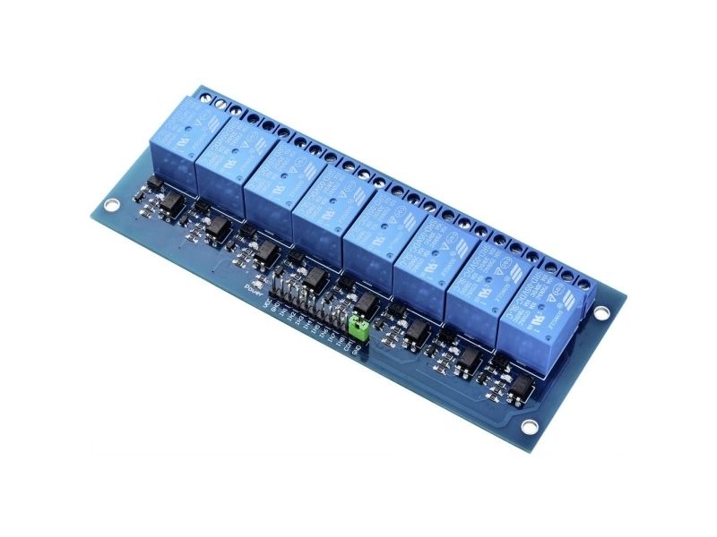 8-kanals relæmodul til ArduinoNem tilslutning og styring af de tilsluttede enheder LOW-niveau-trigger med den Udstyret viser let arbejdsstatusDette 5V 8-kanals relæ-interfacekort kan styre forskellige apparater og anordninger med højt Hohem. Den kan styres direkte ved hjælp af mikrocontrollere (Raspberry Pi, Arduino, 8051, AVR, PIC, DSP, ARM, ARM, MSP430 og TTL-logik.