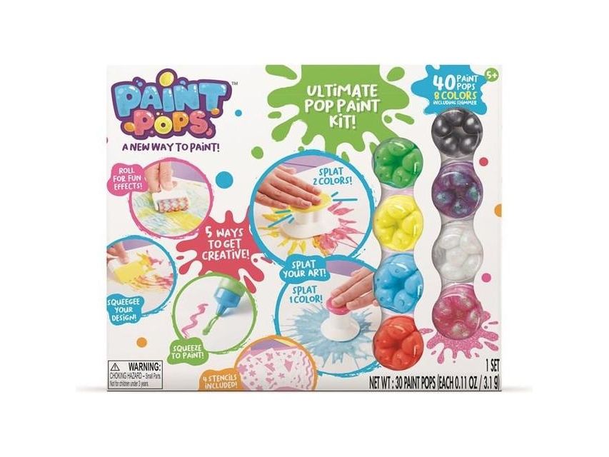 Entfessle deinen inneren Künstler! Paint Pops sind eine neue Art zu malen. Kleine Farbkleckse in einer weichen Kugel, die du mit deinen Fingern oder einem Paint Pops-Werkzeug aufpoppen kannst. Erstelle zufällige, abstrakte Bilder mit den Pop-Werkzeugen oder detaillierte Designs mit dem Pop-Stift. Anschließend kannst du mit dem Roller oder dem Spachtel lustige Effekte hinzufügen - oder dein Meisterwerk mit den Stempeln bestempeln. Die Werkzeuge lassen sich leicht mit Wasser reinigen. Ab 5 Jahren. Dieses Set enthält: