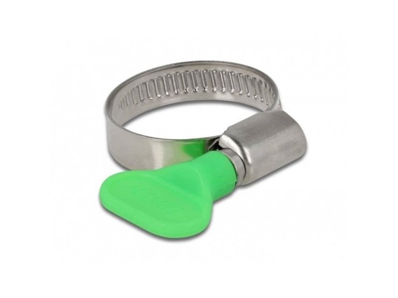This stainless steel hose clamp by Delock can be used to fix a hose with a diameter of 22 - 32 mm on a pipe end without tools. The clamp provides a secure and firm hold of the hose under pressure so that it can't be lost. It is ideal for DIY, home and garden use.