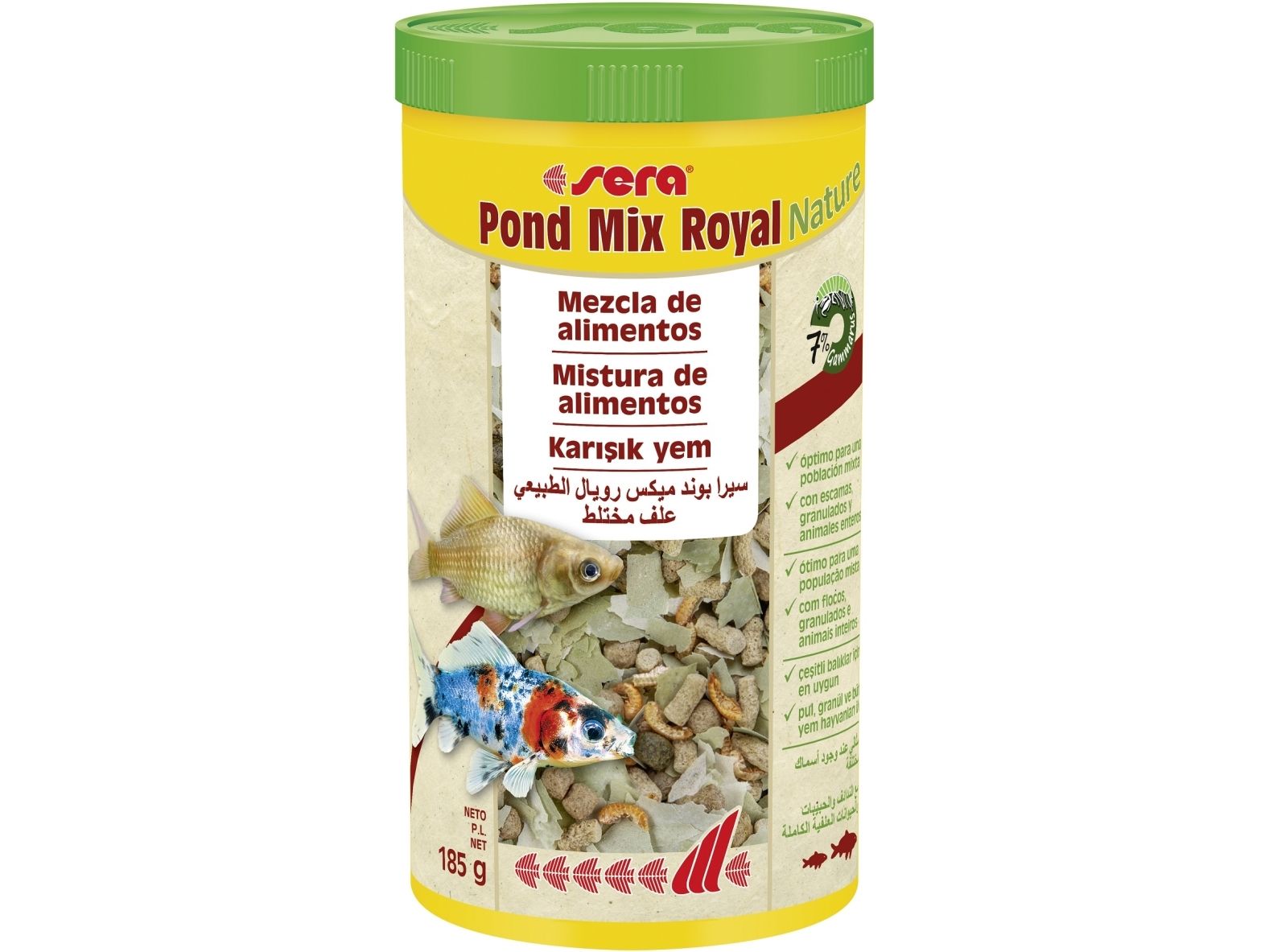 sera Pond Mix Royal ist das Hauptfutter aus schonend hergestellten Flocken, Granulaten und ganzen Gammarus zur ganzjährigen Fütterung in Teichen mit gemischtem Besatz.