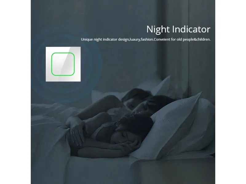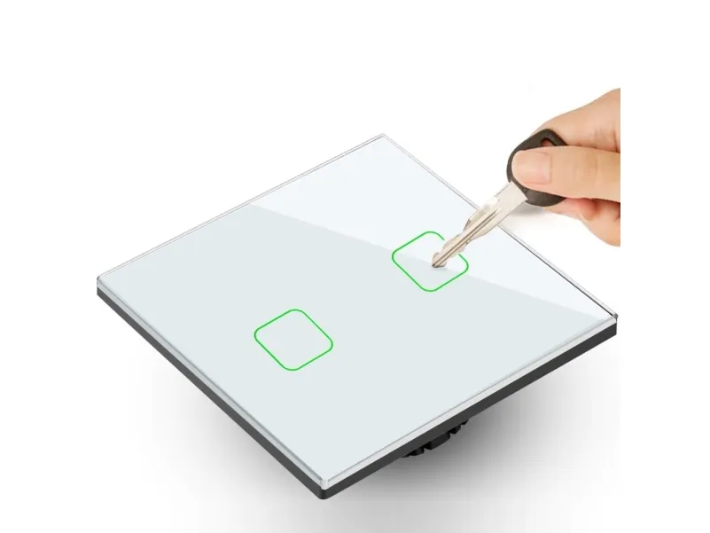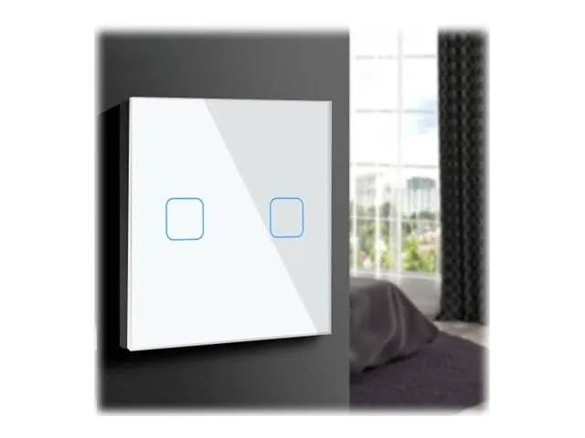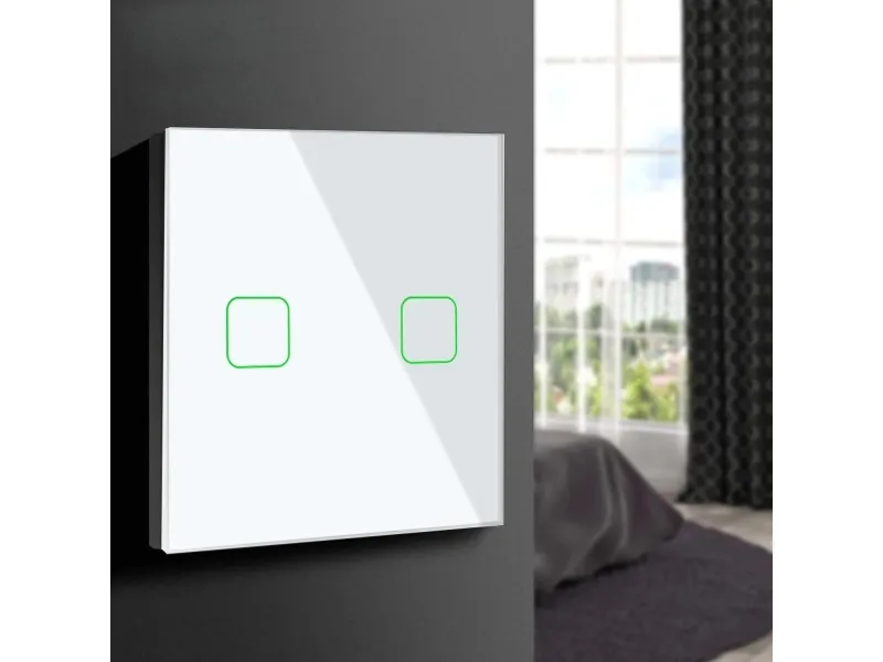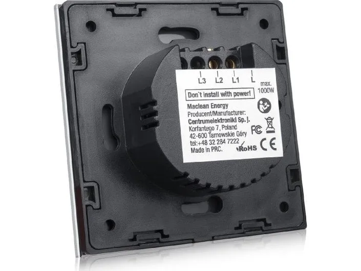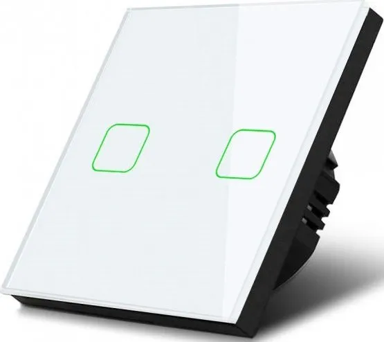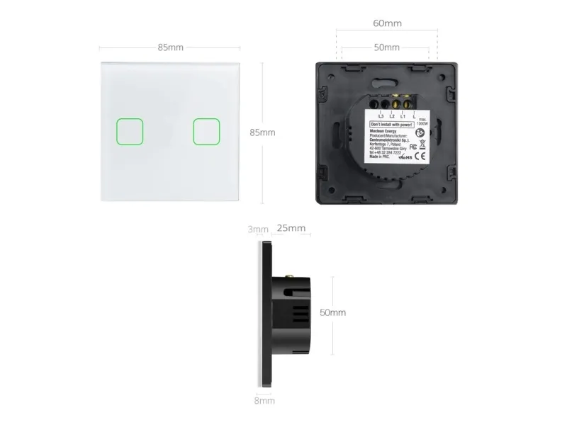 Touch-Lichtschalter, Doppelglas, weiß mit quadratischer Taste Maclean Energy MCE703W, Maße 86x86mm, mit Tastenhintergrundbeleuchtung