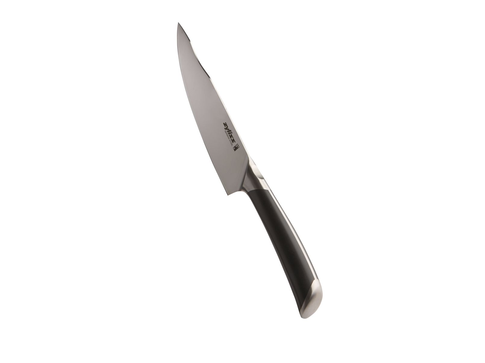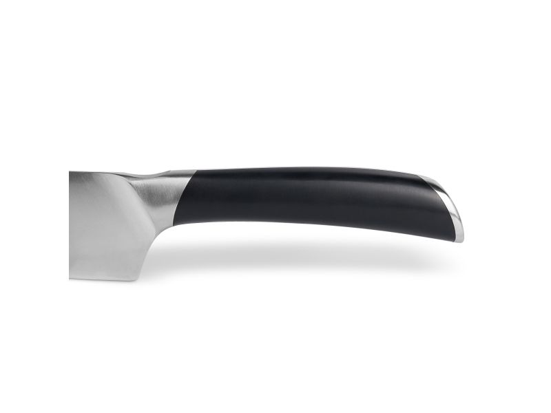 Comfort Pro Chef's kniv er unik i design og bliver nemt din go to kniv i køkkenet. Det superskarpe ishærdede 15° tyske blad i rustfrit stål er velegnet til næsten enhver køkkenforberedelsesopgave og glider let gennem produkterne til ubesværet hakning og udskæring. Det ergonomiske håndtag er designet til ultimativ komfort i hverdagen. Den ligger perfekt i hånden og har en konisk støtte, der giver et fast greb i brug. Fingerindrykningen oven på håndtaget giver en behagelig position til placering af pegefingeren, når du skærer med præcision.