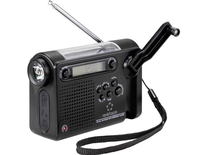 RENKFORCE HÅNDSVING KUFFERTRADIO AM, FM, SORT10 minutters håndsving giver 30 minutters driftstid Enopbygget lithium-batteri (2000 mAh, 3,7 V) Fuld opladning: Ca. 4 timer pr. 5 V DC-indgang, ca. 16 timer via solcellemodulPraktisk Renkforce håndsving kuffertradio ideel ideal til når du er på farten.