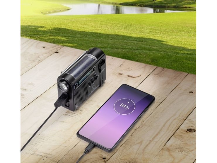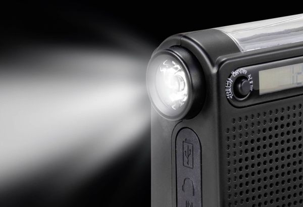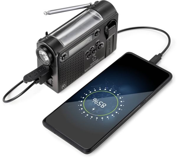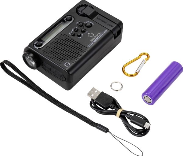 OBS! Denne produktbeskrivelse er endnu ikke blevet oversat til dansk af vores oversættere. Derfor er teksten maskineoversat fra den tyske originaltekst. Flere nødfunktioner som for eksempel opladning ved hjælp af solenergi, opladning med håndsving, opladning via mobiltelefon, opladning via lommelygte og alarm Forskellige modtagerbånd til radio (FM, AM og kW) Forsynet med 5-segment-telesantenne, der kan drejes 360 grader Der kan gemmes op til 120 radiostationer (hver 30 til FM, AM, KW1 og KW2) LCD-display med baggrundsbel