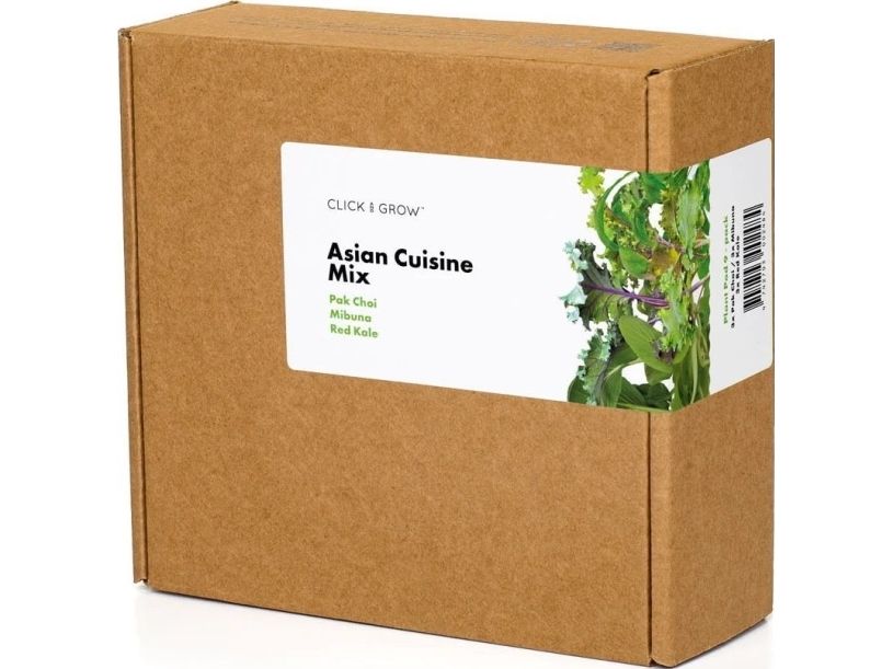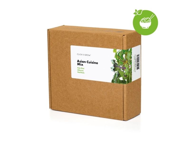 Discover the joys of having your own indoor garden with Click & Grow?s Asian Cuisine Mix. Suitable for everyone from beginners to green-thumbed gardeners our Asian Cuisine Mix allows you to easily cultivate various Asian herbs and salads adding fresh flavours to all your favourite dishes.Effortlessly grow Pak Choi Red Kale and Mibuna in your kitchen.Start harvesting your greens in just 30-40 days.Savour the ?cut and grow again? convenience for up to 8 weeks.Indulge in fresh clean food without herbicides pesticides or toxins.Experience the simplest smart indoor gardening with automated care.Grow Fresh With Ease The Click & Grow indoor garden takes the guesswork out of growing. Insert the Asian Cuisine Mix plant pods and let our smart garden do the rest. You'll enjoy the freshest herbs and salads without any of the usual hassle. With our system whether you're a seasoned gardener or a complete beginner you'll feel like a gardening pro. Harvest Quickly And Continue Growing Your Asian Cuisine Mix will be ready for its first harvest in approximately 30-40 days. Thanks to the innovative design of Click & Grow plant pods you can practice "cut and grow again " ensuring your smart garden continues to produce for up to 8 weeks. Keep your kitchen stocked with the freshest greens possible. Enjoy Clean Healthy Food Click & Grow is committed to your health and safety. Our Asian Cuisine Mix is free from herbicides pesticides and other toxins giving you the peace of mind that comes with clean eating. You can focus on creating delicious meals with the confidence that you're feeding yourself and your family wholesome food. The Easiest Indoor Garden We've designed the Click & Grow smart gardens as the most user-friendly indoor gardening solution. Insert your plant pods and watch them grow. The smart garden takes care of your watering lighting and nutrients. This is homegrown the smart way. Garden-To-Plate Freshness With the Click & Grow Asian Cuisine Mix the farm-to-table concept is at your fingertips. Transform your kitchen into a haven for fresh food. Enjoy the experience of adding garden-fresh herbs and salads to your salads smoothies stir-fries or even as a healthy snack straight from the smart garden to your plate. Package Includes3 x Pak Choi plant pods3 x Red Kale plant pods3 x Mibuna plant pods