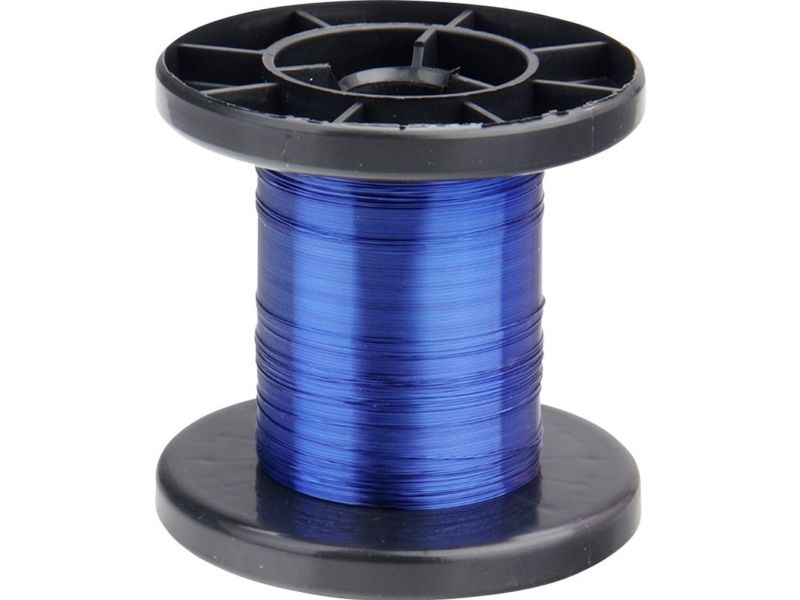 COPPER LACQUER 0,15 mm - 100 m - blauLackierter Kupferdraht, der mit einer feinen Silberschicht überzogen ist, wodurch die darüber liegenden kräftigen Lackfarben erst richtig zur Geltung kommen. Ø 0,15 mm, 100 m auf Spule, lötbar ab ca. 350 °C.