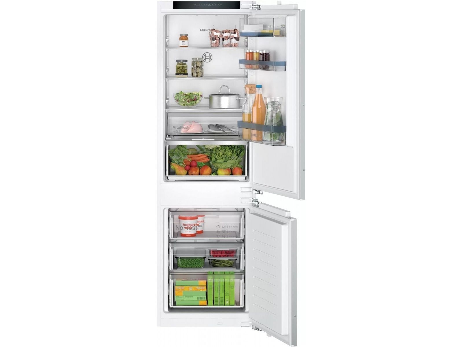 The spacious built-in fridge-freezer combination with VitaFresh XXL and NoFrost keeps food fresh for longer and prevent ice formation.