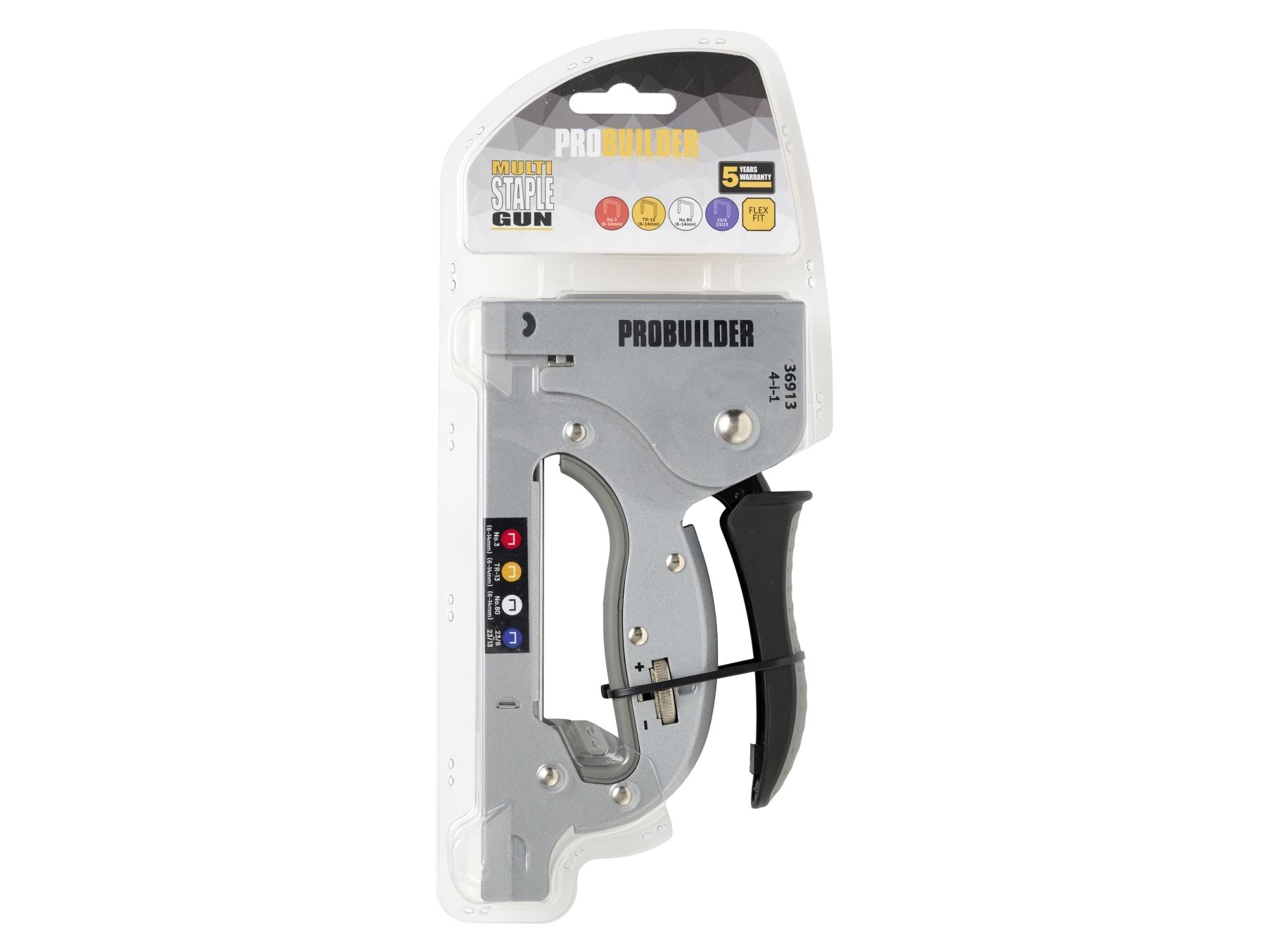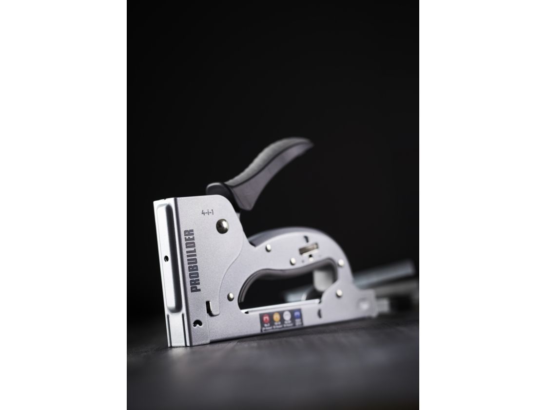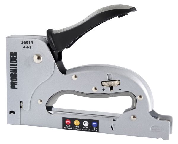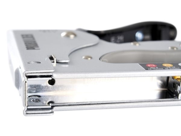 Stahlkonstruktion mit Softgrip "Drop-In"-Schienenkonstruktion für einfaches Nachfüllen von Heftklammern Nachfüllanzeige Einstellbare Schlagstärke Nimmt die folgenden Klemmentypen: - Nr.3 / 53 (6-14mm) - Nein. 13 / TR13 (6-14 mm) - 23/6 - 23/13