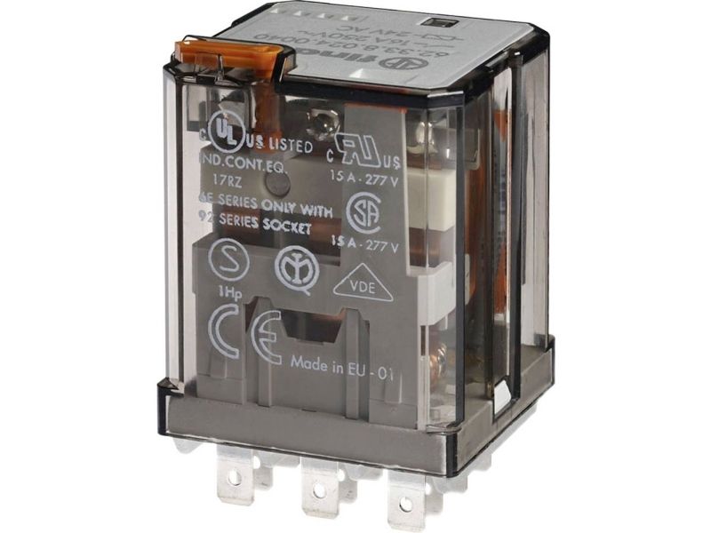 Finder 62.33.9.024.4040 Stikrelæ 24 V/DC 16 A 3 x omskifter 10 stk