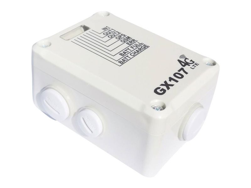 GSM-fjernstyrings-/alarmmodul GX107Statusforespørgsel · Sprogvalg engelsk/tysk · Fastsættelse af op til 6 telefonnumre til alarm-sms · Definition af en e-mail-adresse til alarmmeddelelser · Aktiver/deaktiver en alarmmeddelelse · Ændring af enhedens navn · Kobling af en udgang · Definition af alarmegenskaberne ved statusændringer ved den digitale indgang · Fastsættelse af to grænseværdier ved den analoge indgang · Kobling af en digital udgang ved opkald · Forespørgsel af gps-position · Definition af 10 geografiske zoner · Definition af alarmegenskaberne, hvis en zone forlades. Overvågning af stationære og bevægelige genstande. Registrer til enhver tid via sms den målte spænding/temperatur, elektriske signalers status og valgfrit genstandens aktuelle GPS-position Kobl bekvemt via sms eller opkald 1 af 2 koblingsudgange Bliv informeret via sms og e-mail, hvis f.eks. strømforsyningen svigter, temperaturen stiger/falder over/under indstillelige værdier eller valgfrit, hvis den