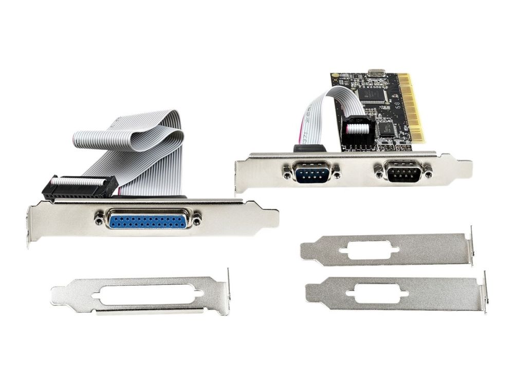 This PCI 1x Parallel and 2x Serial Combo Card installs into a single PCI slot in your computer (occupying 2 to 3 expansion slots, depending on profile), and adds a DB25 IEEE 1284 parallel port and two DB9 RS 232 serial ports to your system.