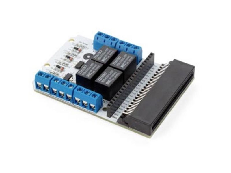 4-Kanal-Relaismodul für Microbit®BBC Micro:Bit® Interface Connector * Anzeige-LEDs für den Relaisstatus * 3,3-V-Regler auf der PlatineDieses 4-Kanal-Relais-Interface kann verschiedene Geräte und andere Einrichtungen mit hohem Hohem steuern. Es kann direkt von einem Microbit® gesteuert werden.