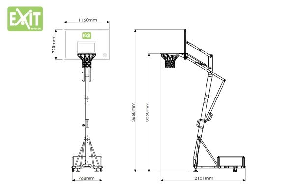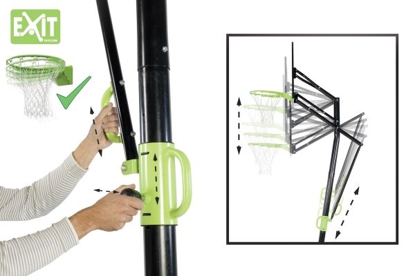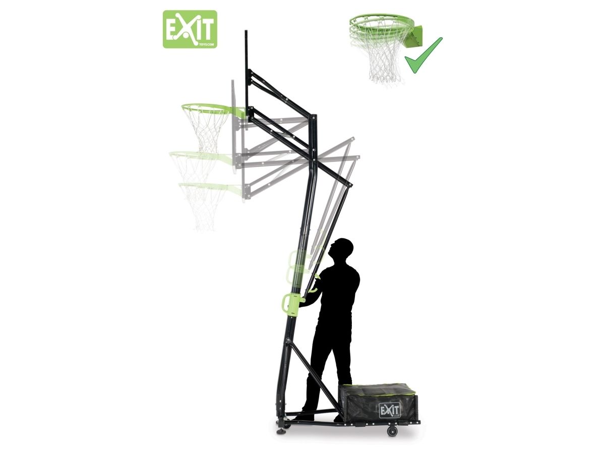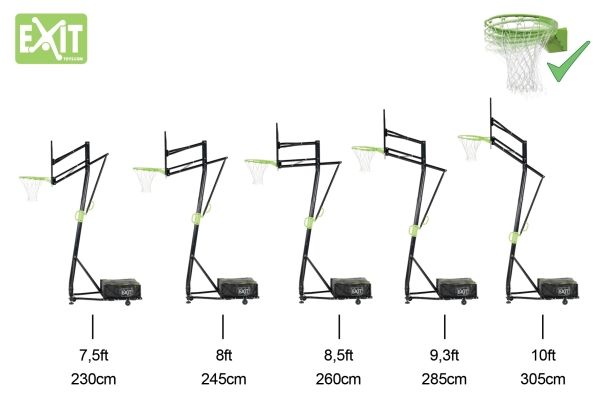Das EXIT Galaxy Basketballsystem ist verstellbar in fünf Höhen: 230cm / 245cm / 260cm / 285cm / 305cm (Spielhöhe für Erwachsene)