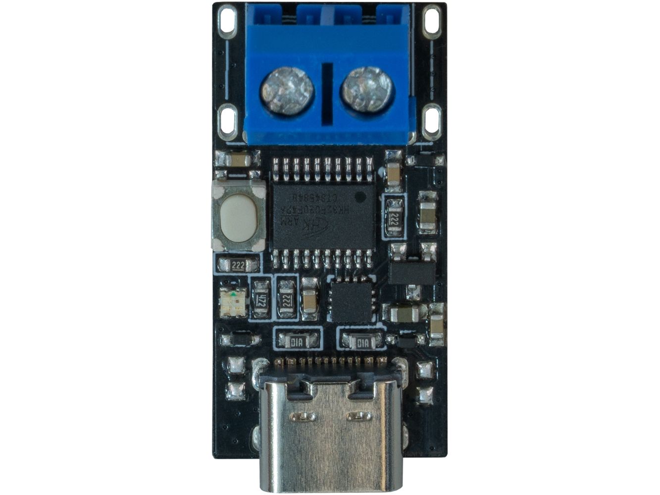 Mit diesem kleinem Modul können Sie USB-PD Protokolle auslösen und somit zum Beispiel Ihren Laptop über ein PD-fähiges USB-C Netzteil laden. Die Ausgangsspannung ist über den auf dem Modul integriertem Knopf in 5 Stufen (5 V, 9 V, 12 V, 15 V und 20 V) einstellbar. Die momentan ausgewählte Spannung kann an der Farbe der auf dem Modul integrierten RGB-LED abgelesen werden. Das Modul ist aufgrund seiner Ausgangsschnittstellen flexibel einsetzbar und leicht zu integrieren.