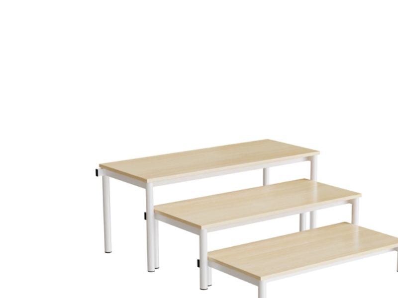 Bank Idol, Treppe 800, Birke Laminat, weißer Rahmen, 3 Teile