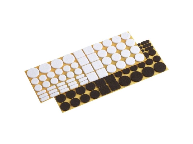 Filzgleiter-Sortiment selbstklebend, 110 StückPraktisches Set bestehend aus verschiedenen Größen, für unterschiedlichste Anwendungen Natürlicher Schutz für empfindliche Oberflächen Für ein komfortables Verschieben von Möbeln und Gegenständen auf glatten Oberflächen Präzise angepasste Formen ermöglichen eine schnelle Anwendung Ideal für empfindliche Oberflächen wie Parkett, Laminat, PVC und Fliesen Abriebfester Filz wirkt stoßdämpfend und vibrationshemmend Selbstklebend für eine einfache MontageFilzstärke : 3 mm Anwendungsbereich: Laminat, Fliesen, PVC, Parkett Selbstklebend Stoßdämpfend Vibrationshemmend