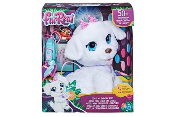 Alle Kinder, die Tiere lieben und gern tanzen, wird GoGo, mein tanzendes Hündchen, das interaktive Tierchen, begeistern! GoGo von furReal Friends ist ein niedlicher, elektronischer Spielzeug Hund, der tanzen kann, und eine einfach zu benutzende automatische Leine enthält. Wird der Tanz-Knopf an der Leine gerückt steht das Hündchen auf und beginnt zu tanzen, während sie 5 verschiedene Lieder abspielt. Mit einem Druck auf den Knopf zum Laufen kann sie zu einem Spaziergang geführt werden und macht dabei alle möglichen witzigen Geräusche. Dank über 50 Geräuschen und Reaktionen steckt dieses süße Animatronik-Tierchen von furReal voller Überraschungen. GoGos Wackelkopfbewegung beim Laufen ist einfach unglaublich niedlich! furReal and all related properties are trademarks of Hasbro.