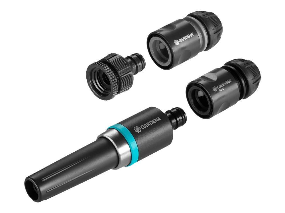 Komplettset für die Bewässerung und Reinigung in Haus und Garten. GARDENA EcoLine basic ist die ideale Kombination aus Nachhaltigkeit und Funktionalität für Ihren Garten. Das Starterset mit Reinigungsdüse, Hahnkupplung, Adapter und Schlauchkupplung mit Wasserstopp sorgt für einen sicheren Anschluss des Gartenschlauchs an den Wasserhahn. Mehr als 90 Prozent des im Set verwendeten Kunststoffs wurde aus recyceltem Material hergestellt, hauptsächlich aus Haushaltsabfällen. Das Set sieht nicht nur schick aus, sondern gewährleistet dank seiner hohen Qualität auch eine lange Lebensdauer. Zusätzlich zum recycelten Kunststoff wurden für die Metallteile 35 Prozent recycelter Edelstahl verwendet. Das dezente, aber elegante Designkonzept verleiht dem Basisset ein ebenso stilvolles wie zeitloses Aussehen und passt perfekt in den Garten oder auf die Terrasse. Der 2-in-1-Sprühstrahl an der Düse bietet den optimalen Wasserstrahl für unterschiedliche Situationen - ob der Sprühstrahl für Reinigungsarbeiten oder der weichere Sprühstrahl zum Bewässern, der Wasserstrahl ist leicht einstellbar. Der im Set enthaltene Wasserstopper ermöglicht es, das Gerät zu wechseln, z. B. von Sprühgerät auf Sprühlanze oder Sprinkler, ohne zum Wasserhahn zu gehen. Das Wasser stoppt automatisch, wenn das Sprühgerät abgezogen wird und läuft wieder an, sobald das neue Gerät angeschlossen wird. Das GARDENA EcoLine Basic Set ist kompatibel mit 1/2" - 5/8" (13-15 mm) Schläuchen und geeignet für Wasserhähne mit 21 mm (G 1/2") und 26,5 mm (G 3/4") Gewinde. Die Armaturenkupplung ist mit der intelligenten Anti-Splash-Funktion ausgestattet, die für einen gezielten Wasserfluss sorgt, um Wasserkrüge oder Eimer ohne Schlauch spritzfrei zu befüllen. Das EcoLine Basisset ist UV- und frostbeständig und kann daher das ganze Jahr über im Freien stehen. Es wird in Deutschland hergestellt und hat eine fünfjährige Herstellergarantie von GARDENA. Eine natürliche Wahl für passionierte Gärtner. ReTh!nk - Die neue EcoLine Serie. Nachhaltig hergestellt. Ästhetisch gestaltet. Langlebig gebaut.